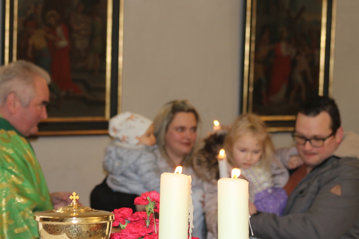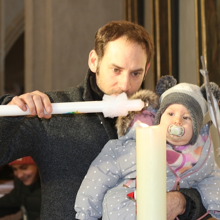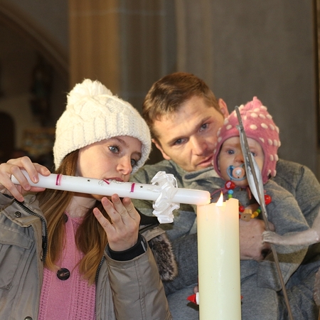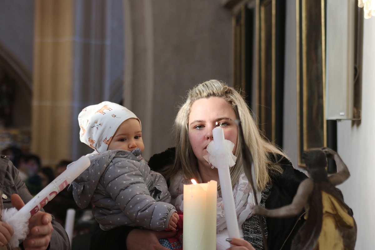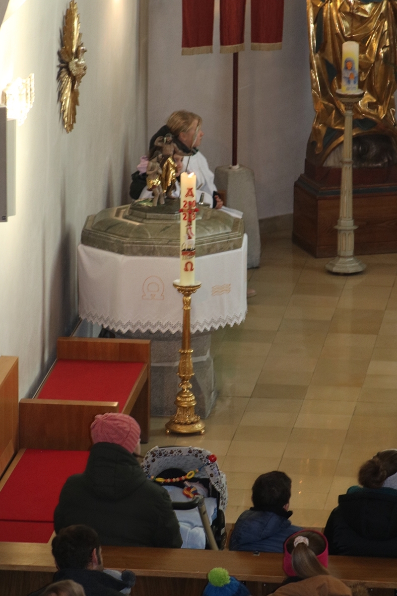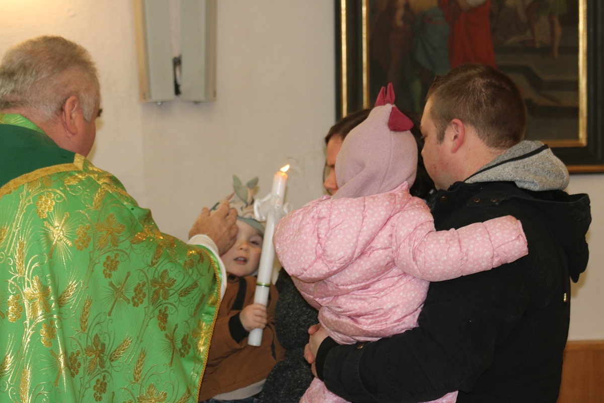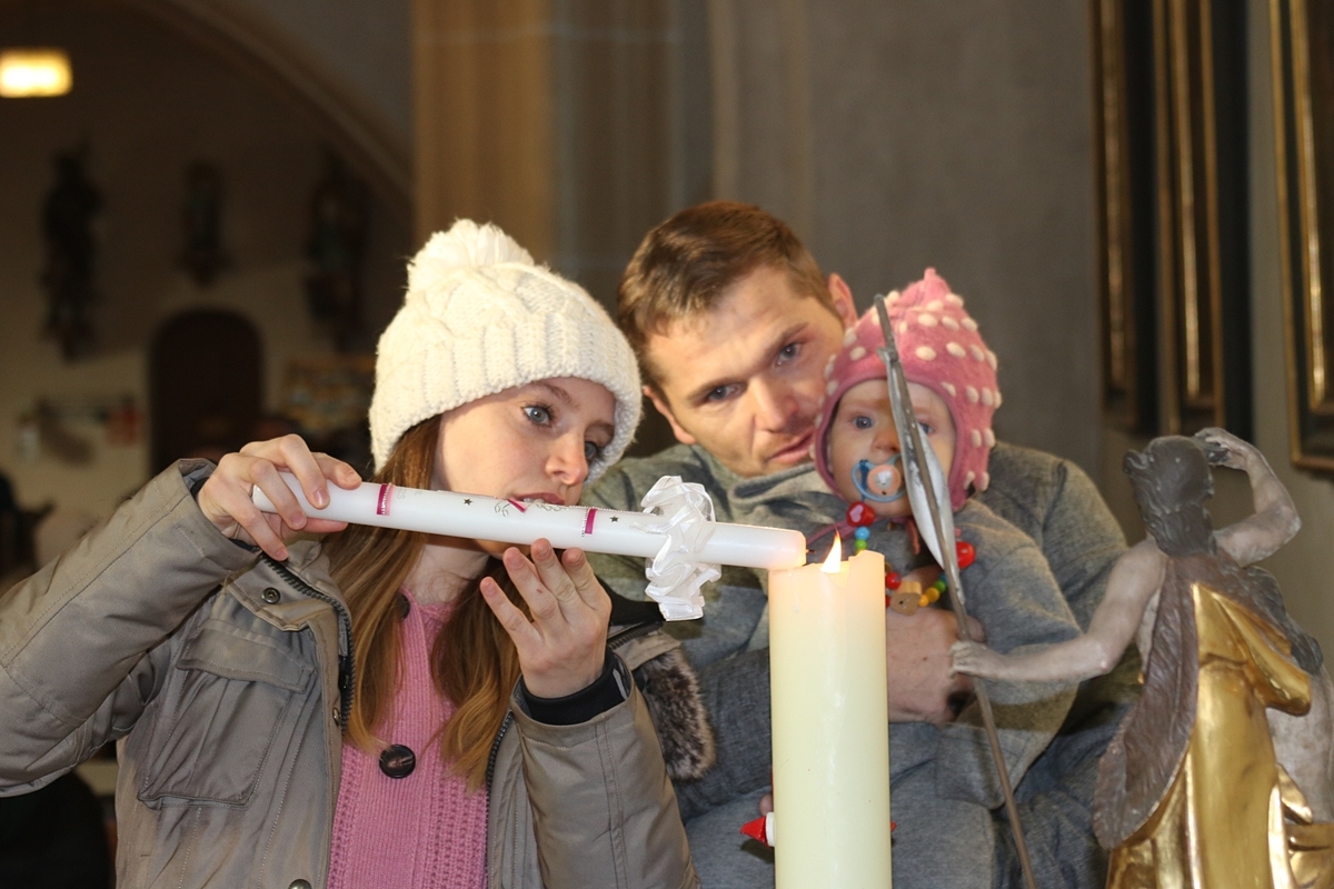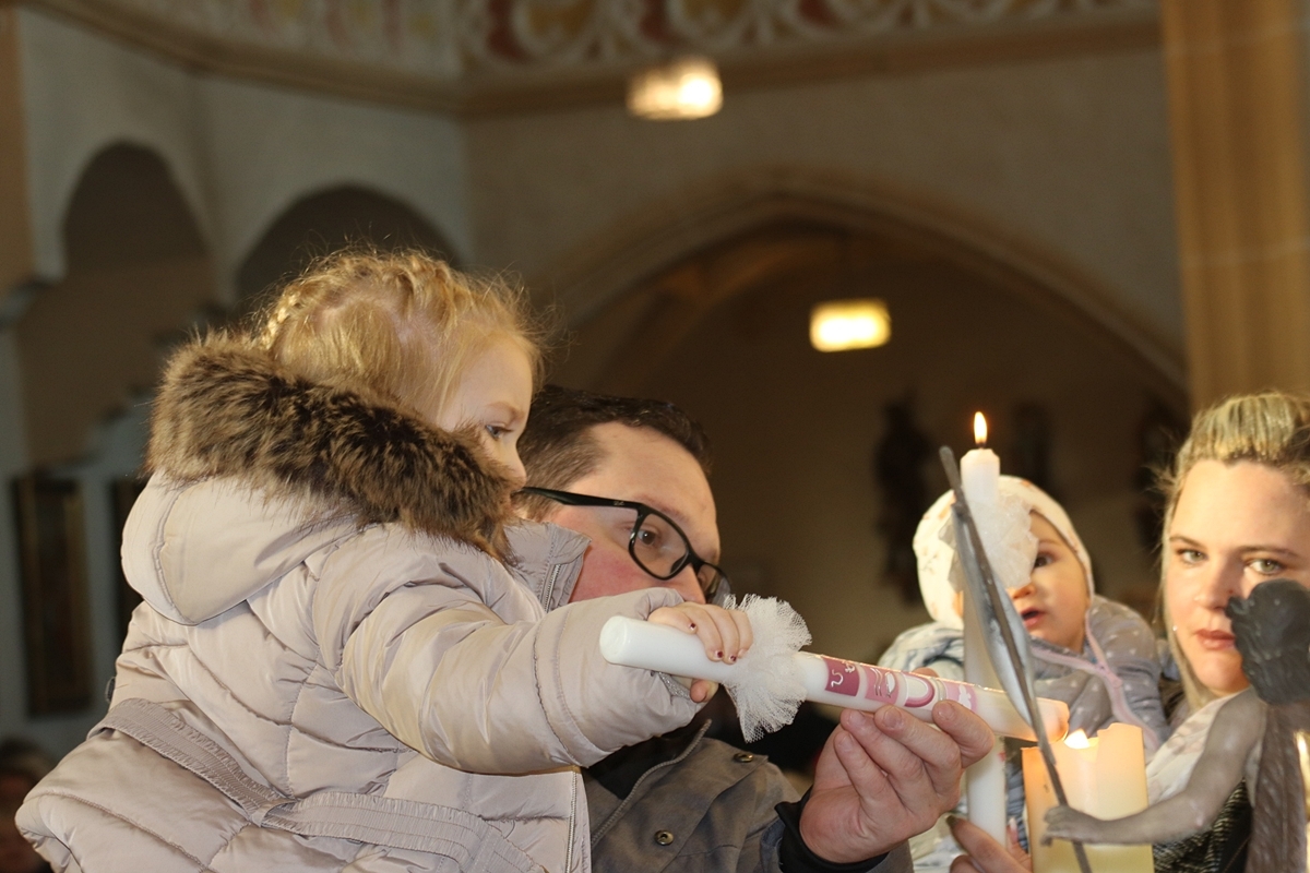 Die Eltern entzündeten, wie bei der Taufe selbst, an der Osterkerze die Taufkerzen der Täuflinge als auch deren Geschwister und erhielten von Pater Manfred den Segen.