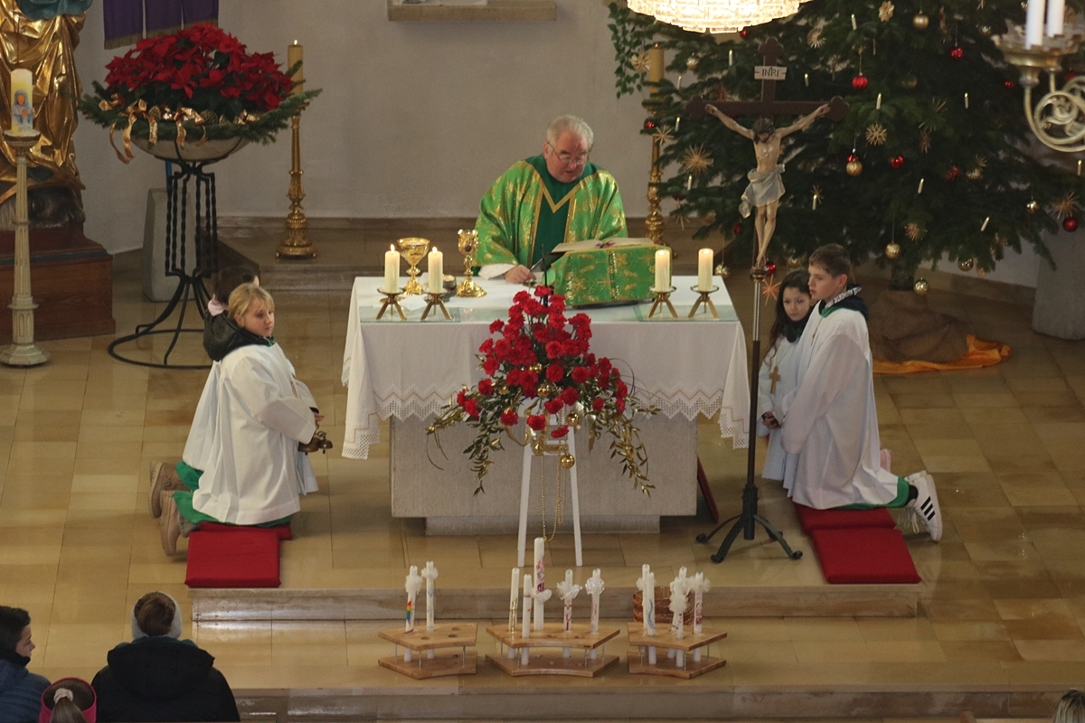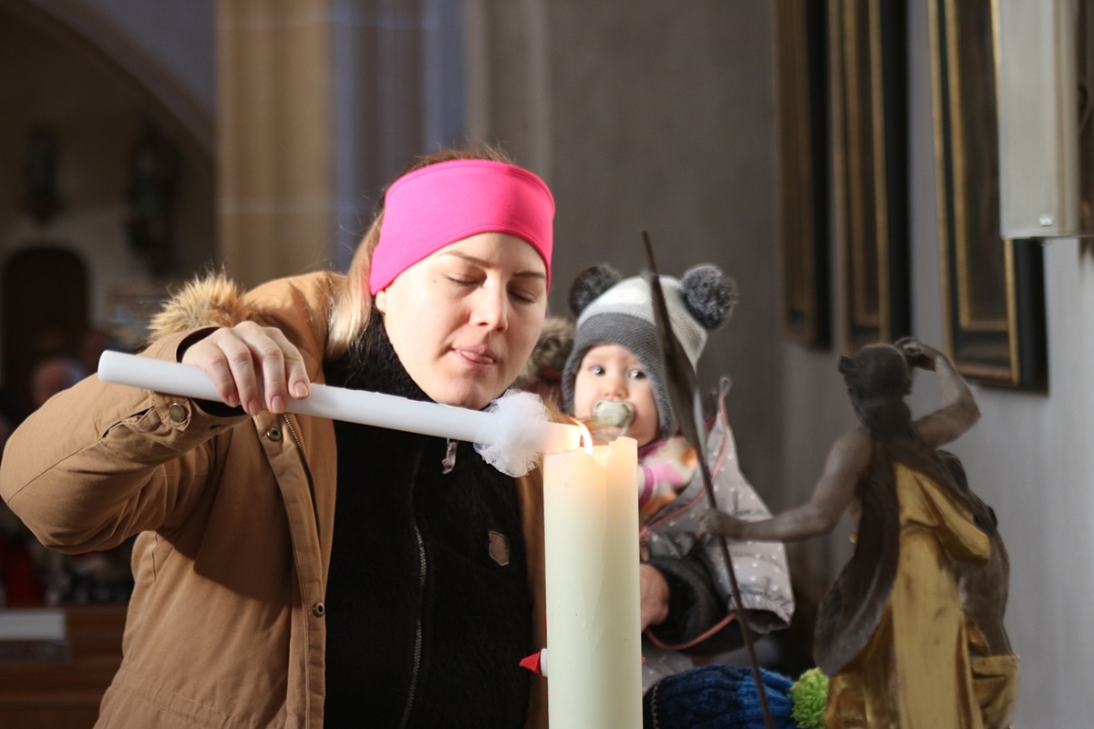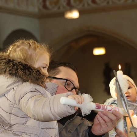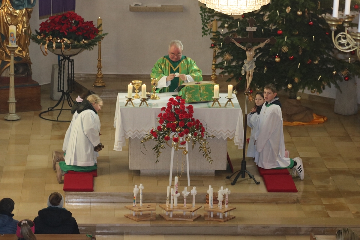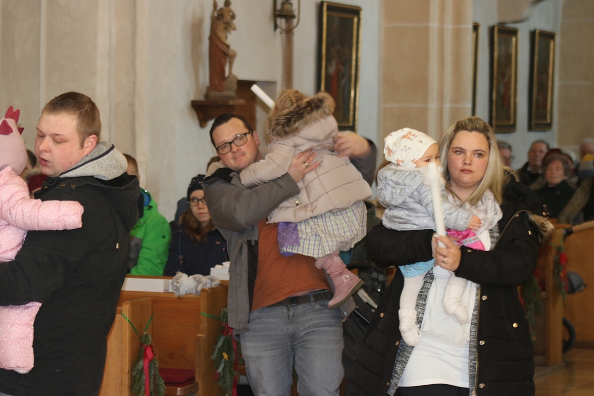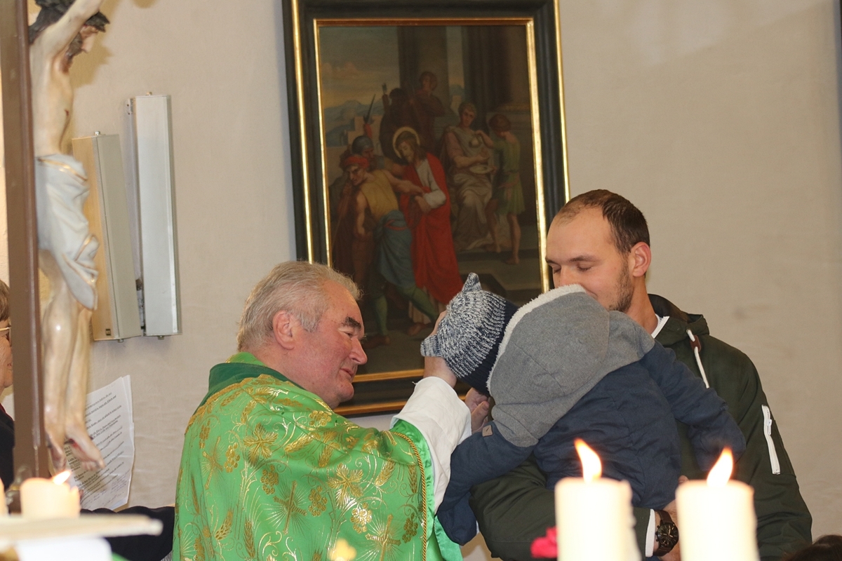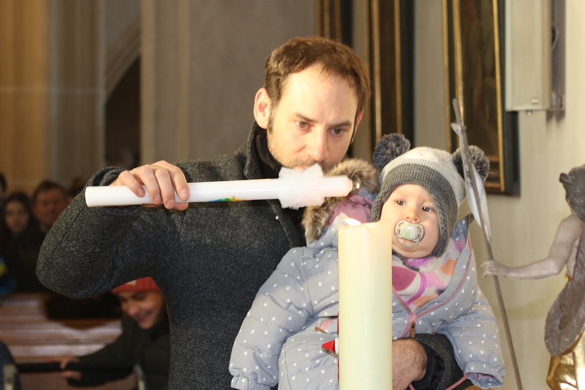 Die Eltern entzündeten, wie bei der Taufe selbst, an der Osterkerze die Taufkerzen der Täuflinge als auch deren Geschwister und erhielten von Pater Manfred den Segen.