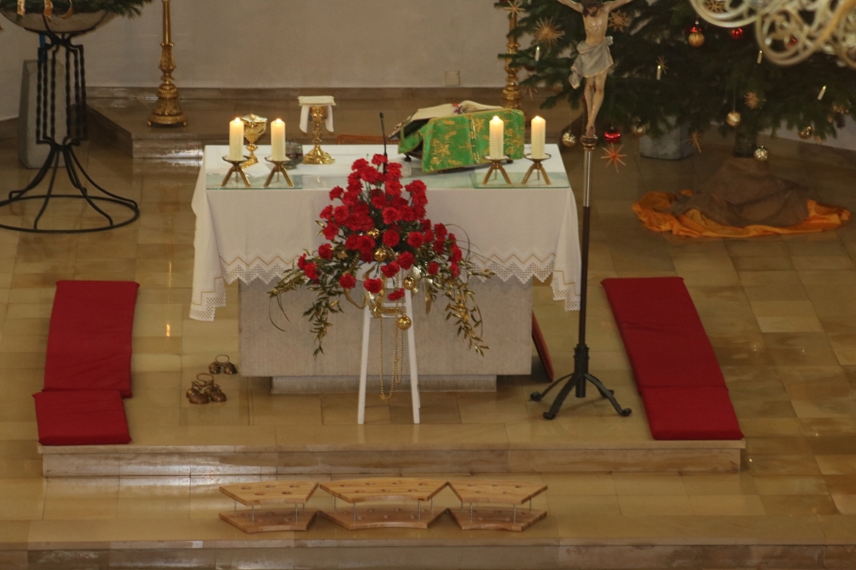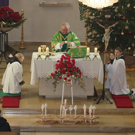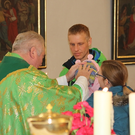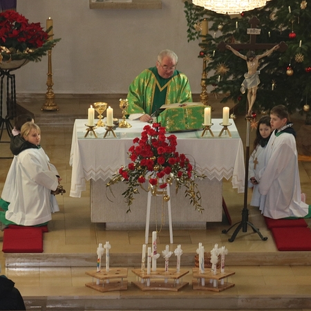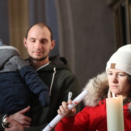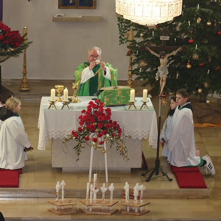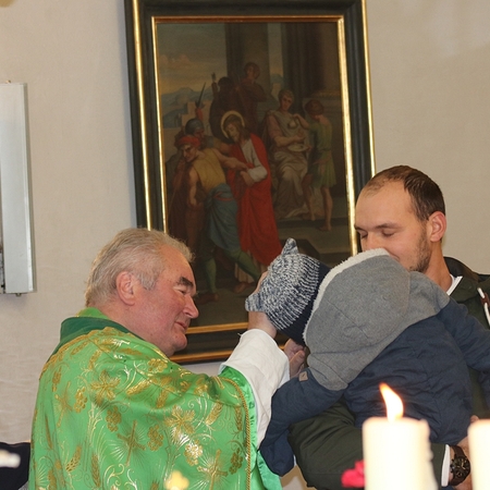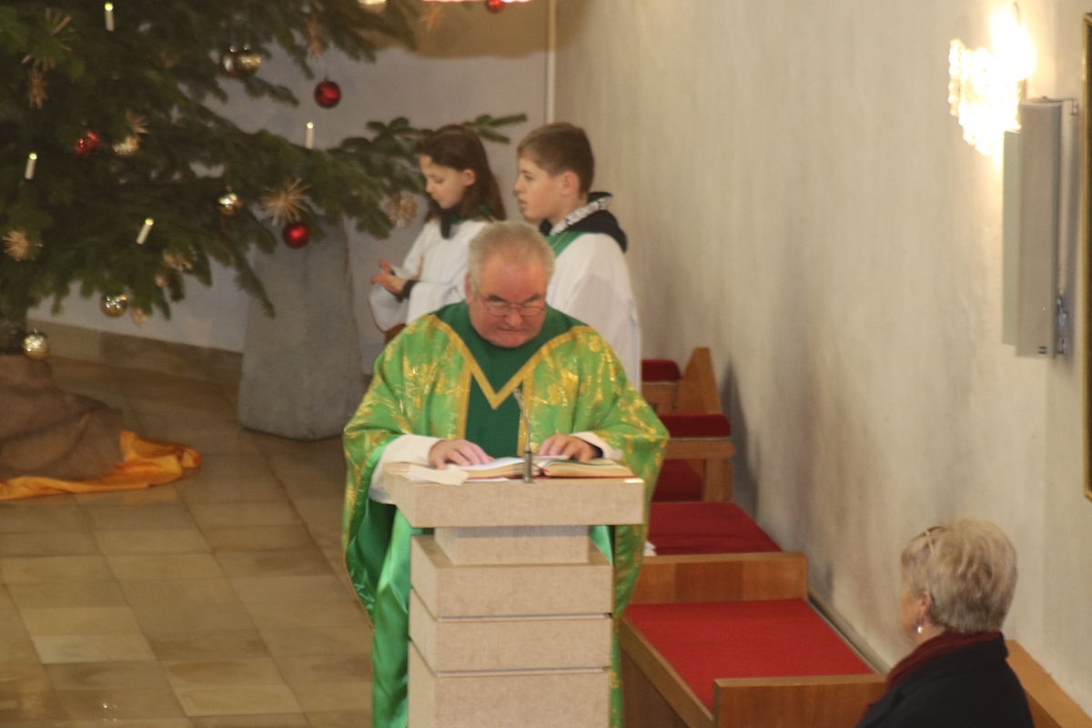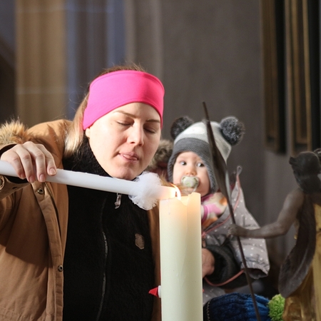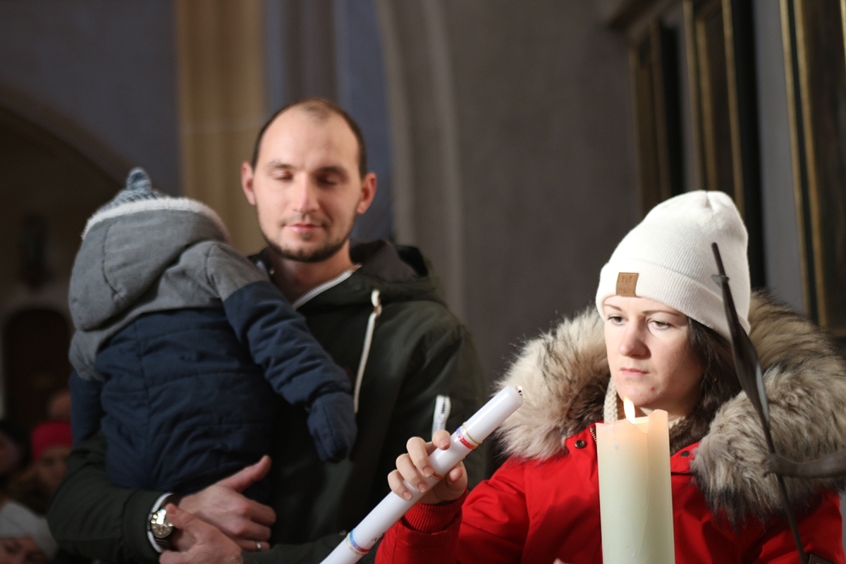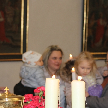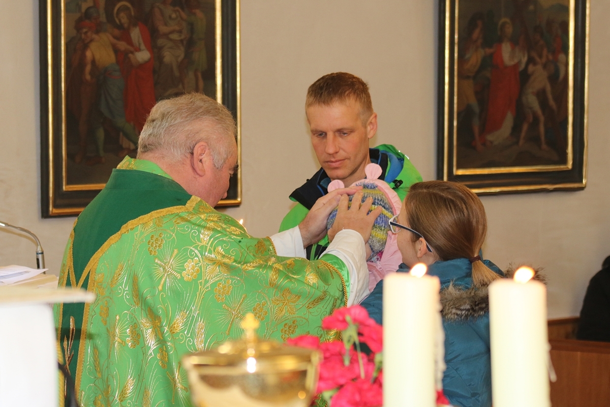 Die Eltern entzündeten, wie bei der Taufe selbst, an der Osterkerze die Taufkerzen der Täuflinge als auch deren Geschwister und erhielten von Pater Manfred den Segen.