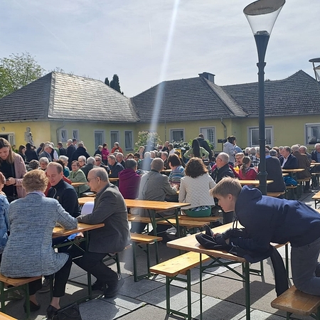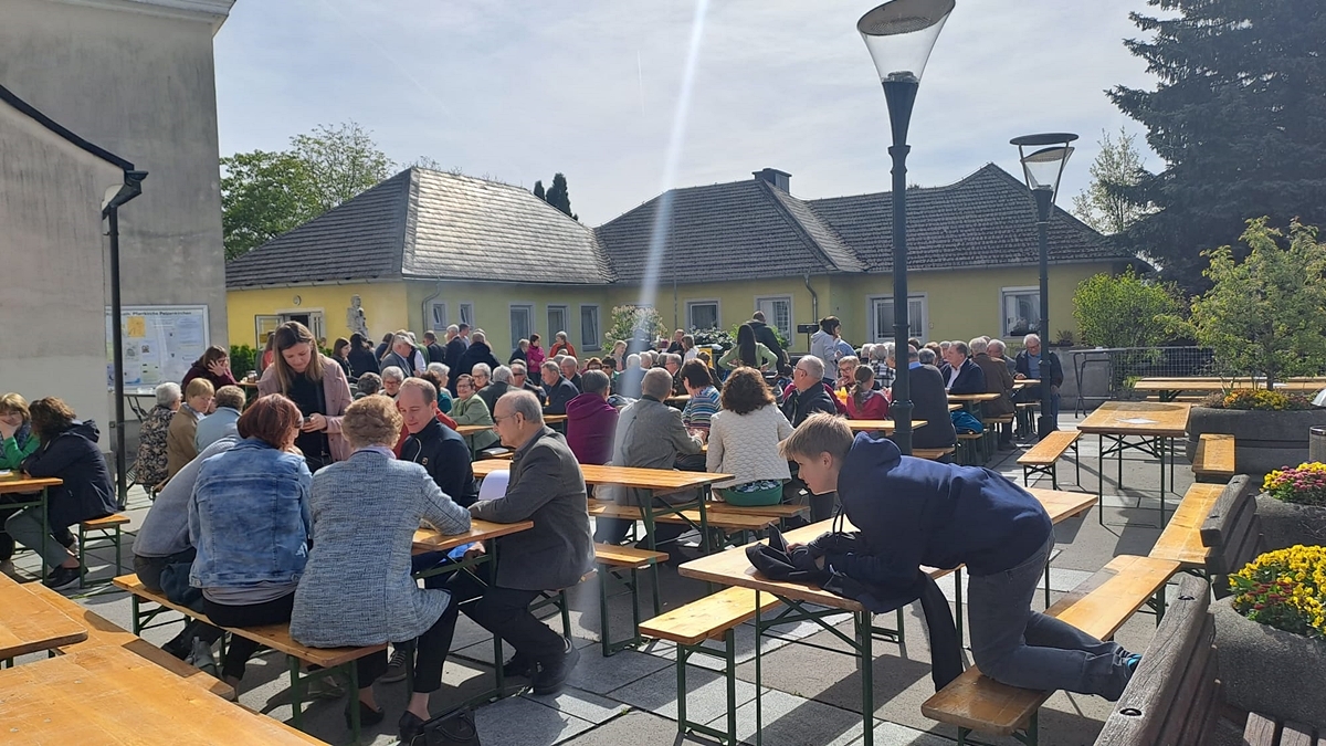 Nach der Hl. Messe fand das Maibaumfest am Kirchenplatz bei herlichem Wetter statt.Für das leibliche Wohl war bestens gesorgt in Zusammenarbeit mit der offenen Liste Petzenkirchen. Beim Pfarrkaffee gab es köstliche Mehlspeisen und der zum Abschluss stattfindeten Tombola gab es viele schöne Preise welche von der Pfarre organisiert wurde.