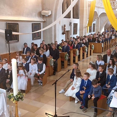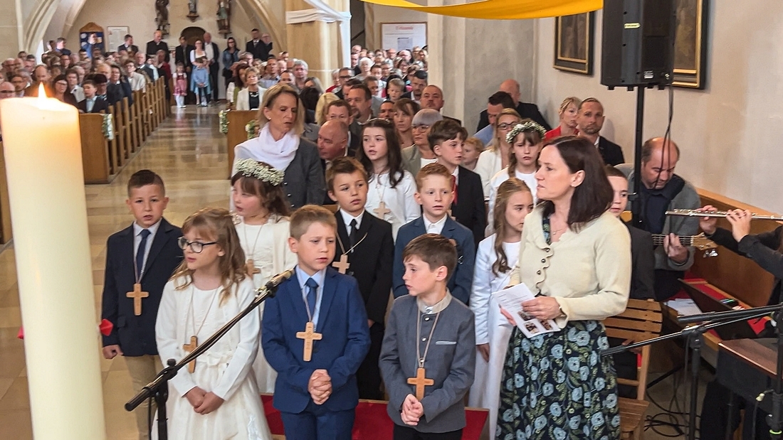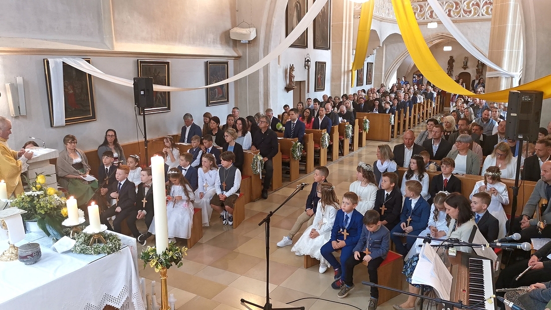 Auch heuer feirten die Erstkommunionkinder unserer Pfarre ein wunderschönes Fest der "Ersten Heiligen Kommunion". Mit dem Motto "Jesus, Quelle des Lebens", tollen Liedern und schönen Texten gestalteten die Kinder gemeinsam mit ihren Tischmüttern den Gottesdienst. Pater Manfred sprach in seiner Predigt besonders mit den Kindern darüber, welche Quelle die Eucharistie für uns sein kann. Die Kinder wurden von ihren Tischmüttern in kleinen Gruppen zuhause auf diesen besonderen Tag vorbereitet und es werden ihnen dabei sicher viele schöne Momente in Erinnerung bleiben.