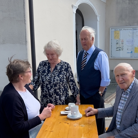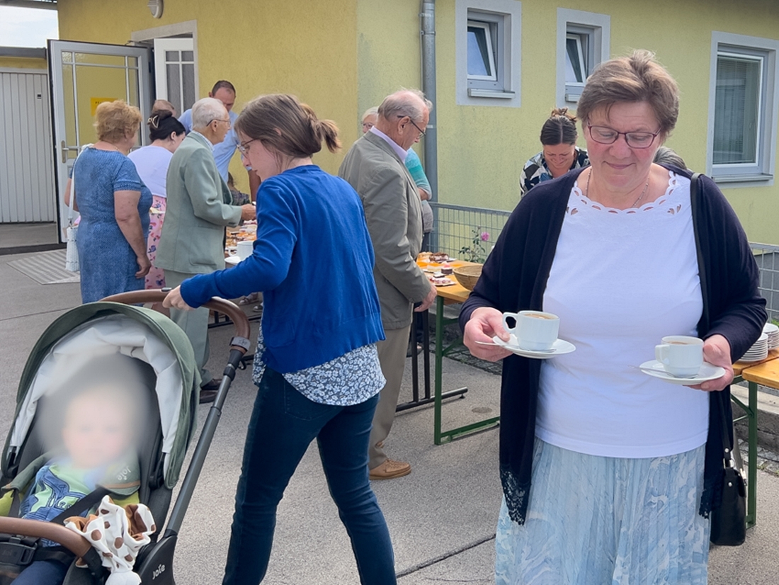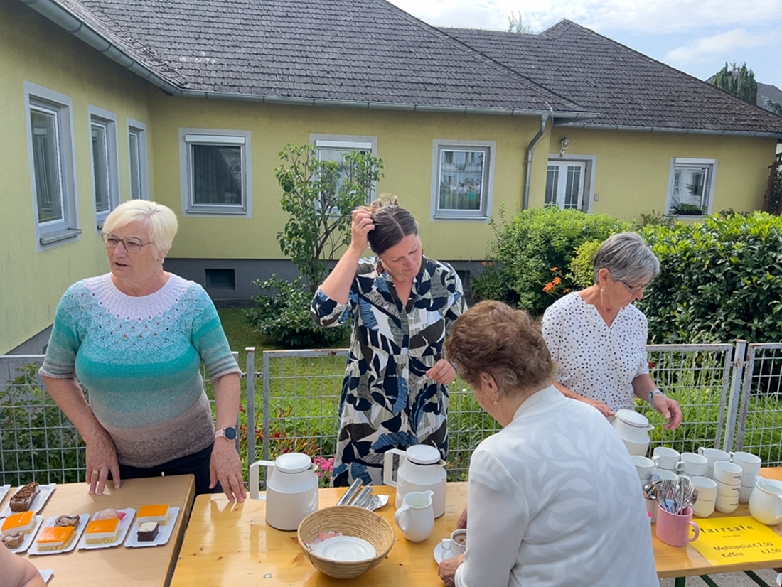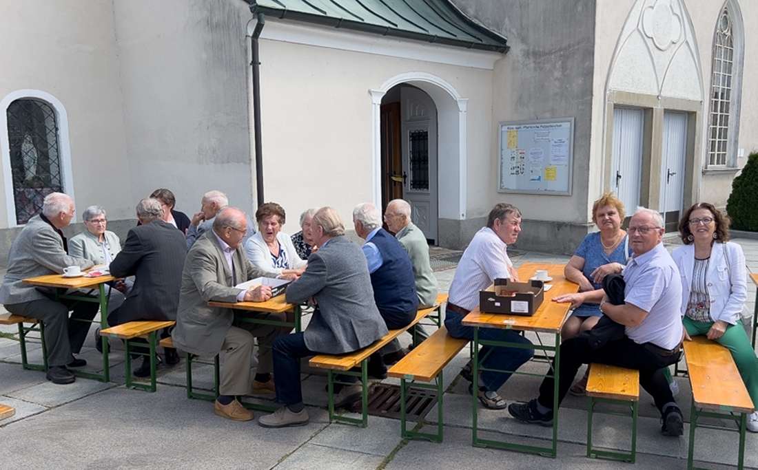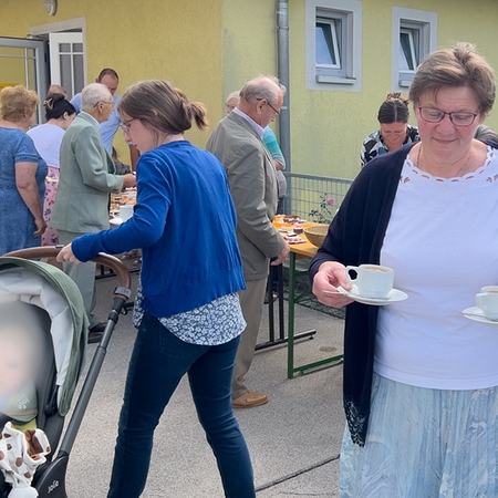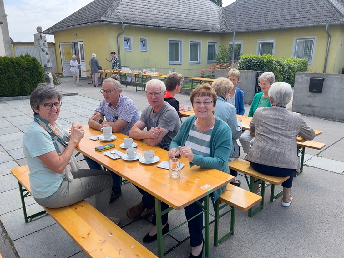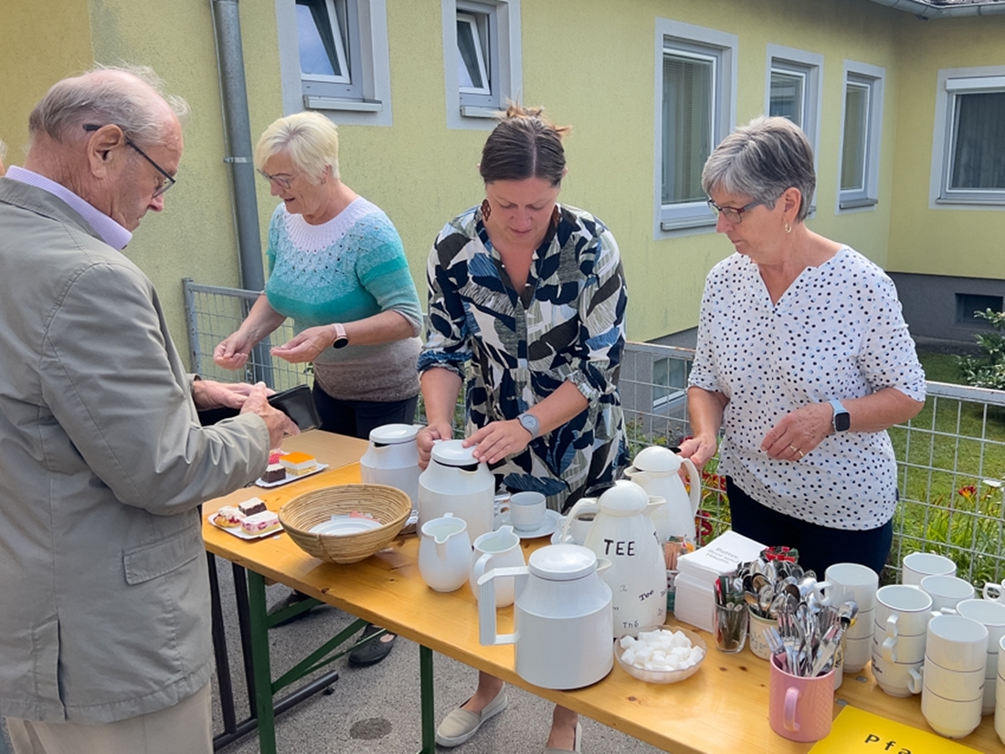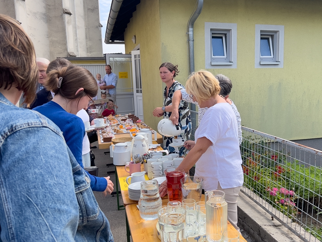 Bei leckeren, selbstgebackenen Mehlspeisen, Kaffee und kalten Getränken nutzten viele Pfarrbewohner die Gelegenheit, miteinander ins Gespräch zu kommen. Wir danken allen, die die Mehlspeisen gebacken haben, beim Servieren geholfen haben und den Pfarrkaffee besucht haben.”