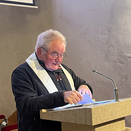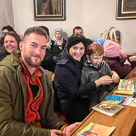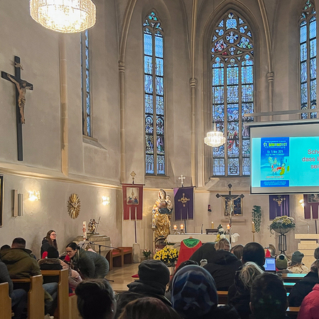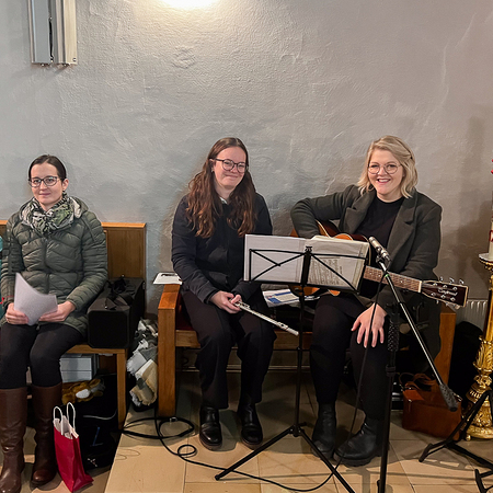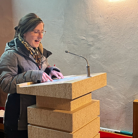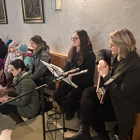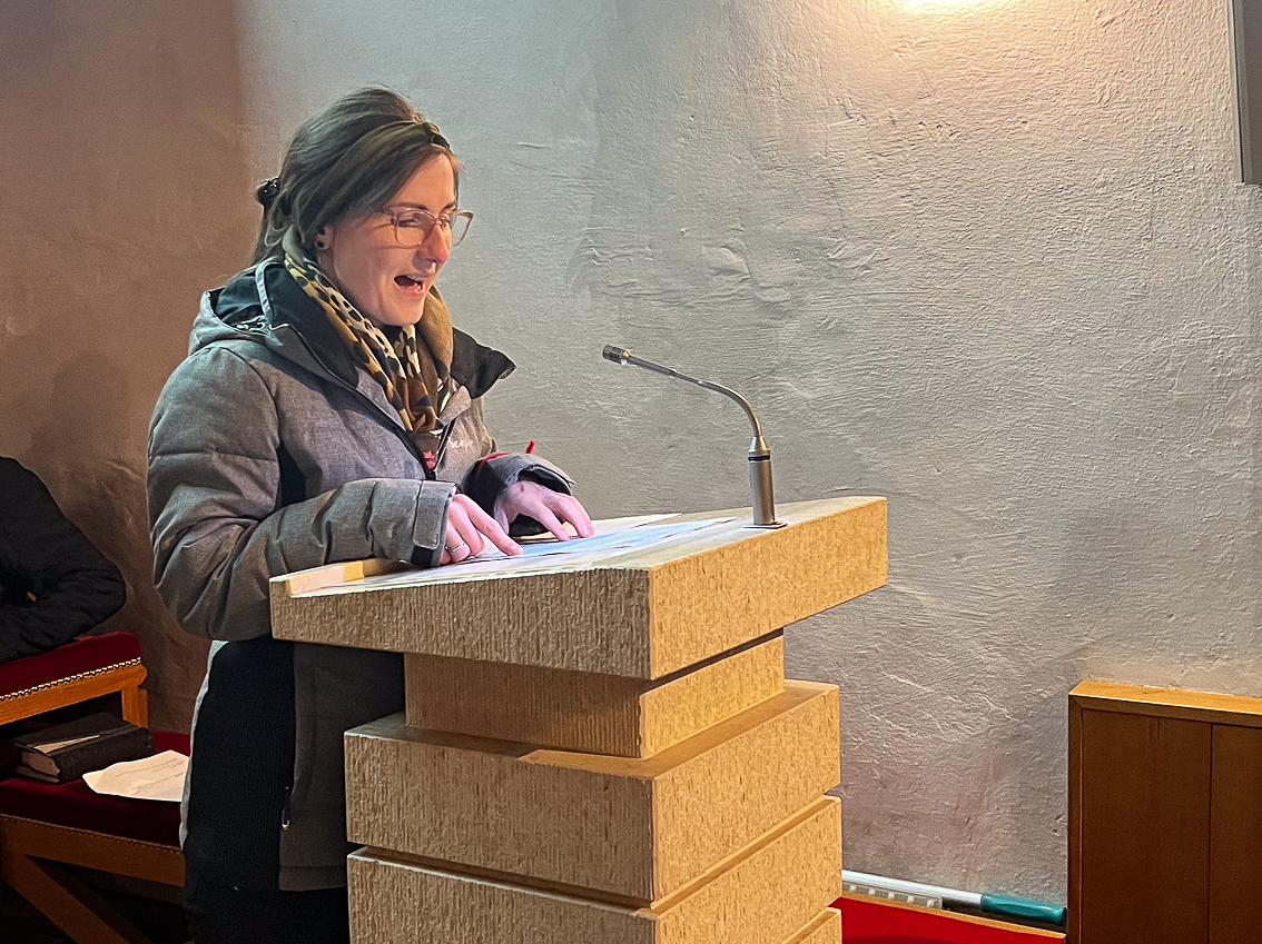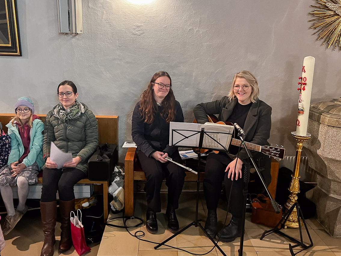 Nach dem Vater Unser und einem Segensgebet durch Pater Manfred wurde die Andacht mit dem Lied „Lasst uns einen Mantel weben“ beendet.