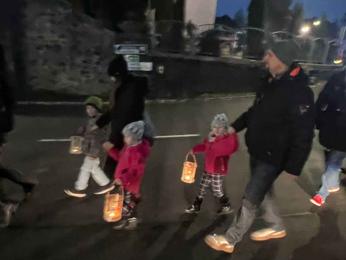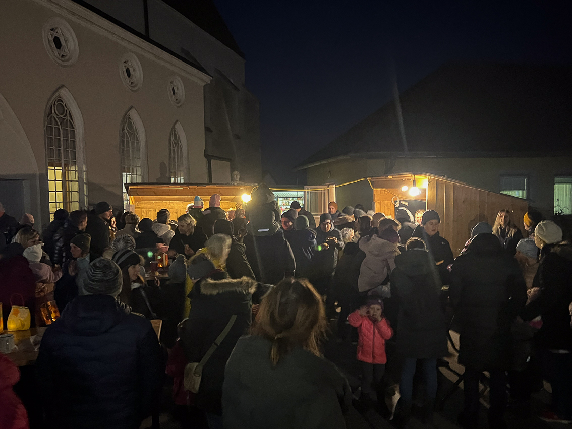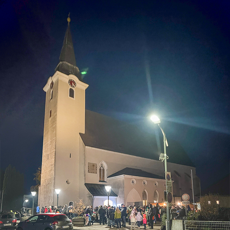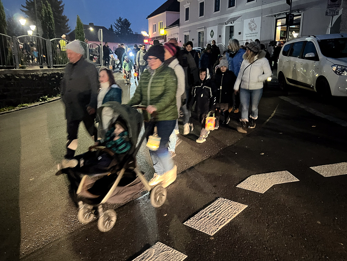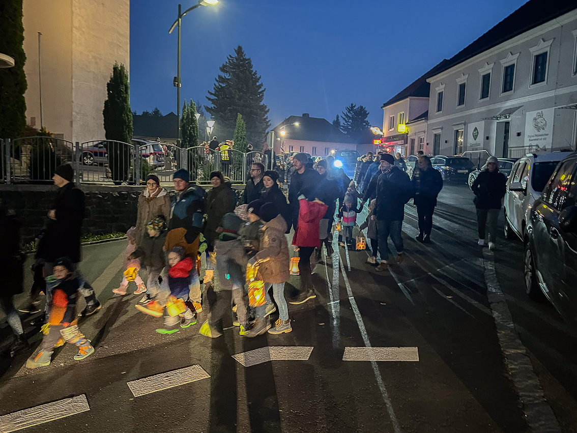 Der gemeinsame Laternenumzug durch Petzenkirchen fand am Kirchenplatz seinen Abschluss, wo die Kinder noch frische Haubis Briochekipferl zum Teilen bekommen haben.