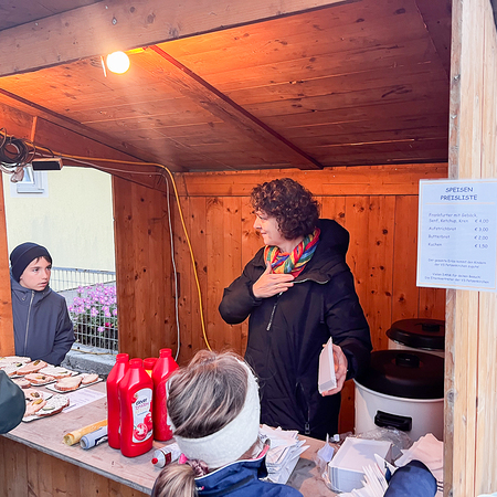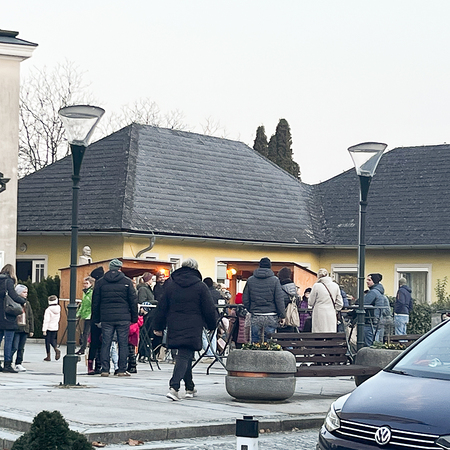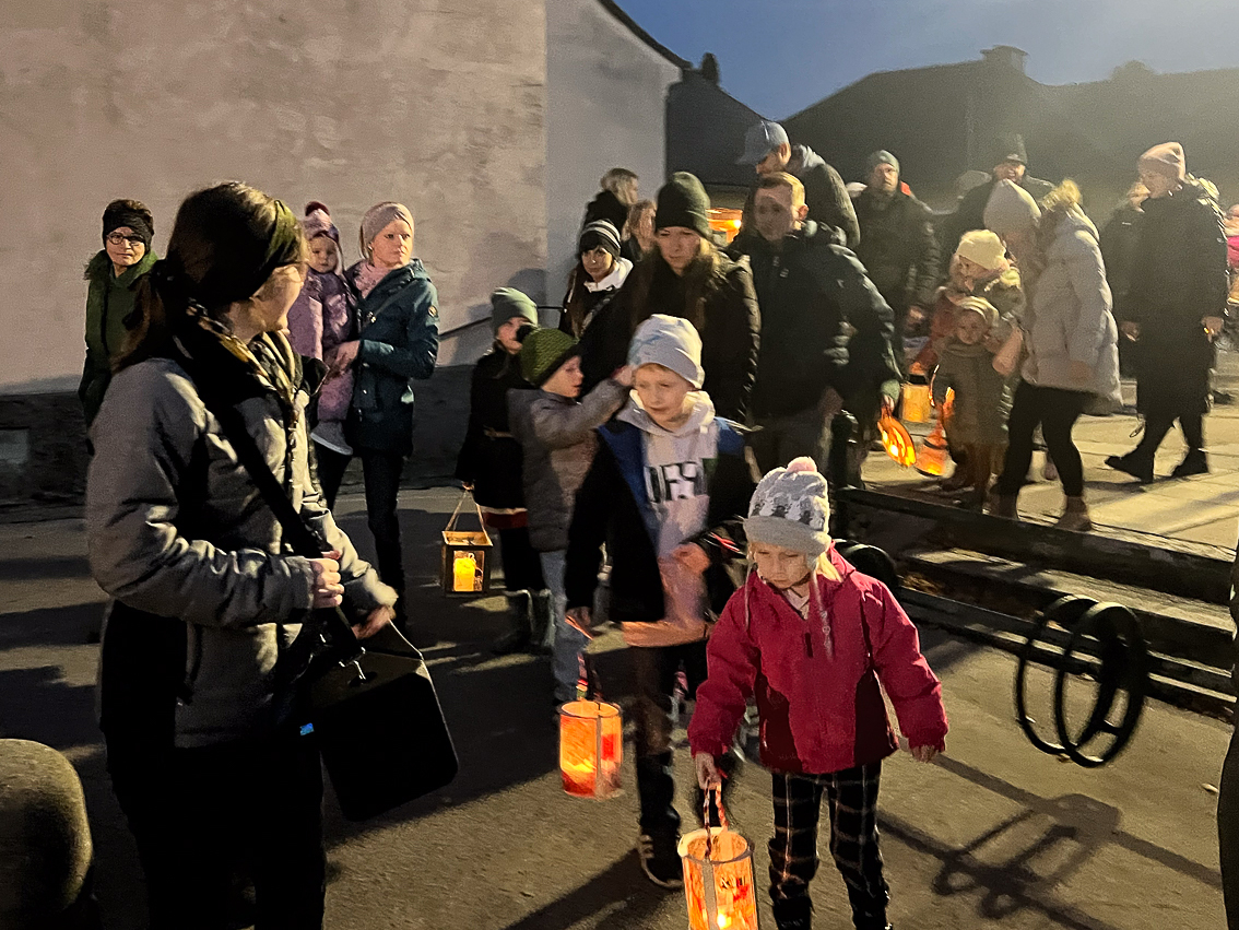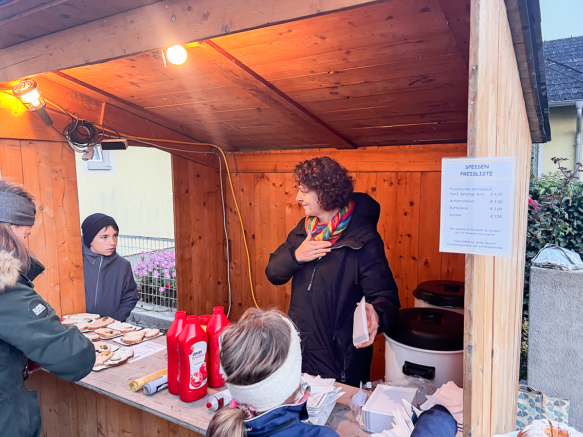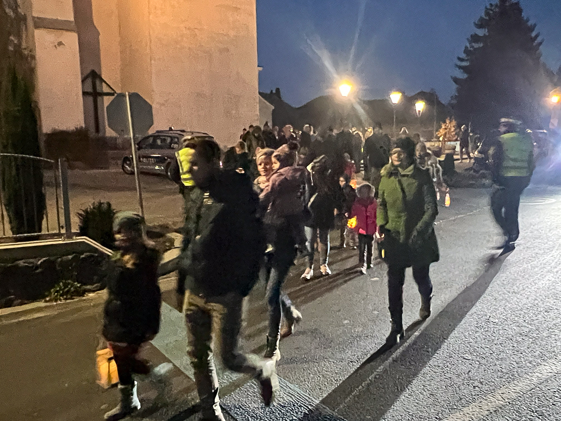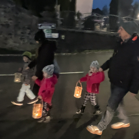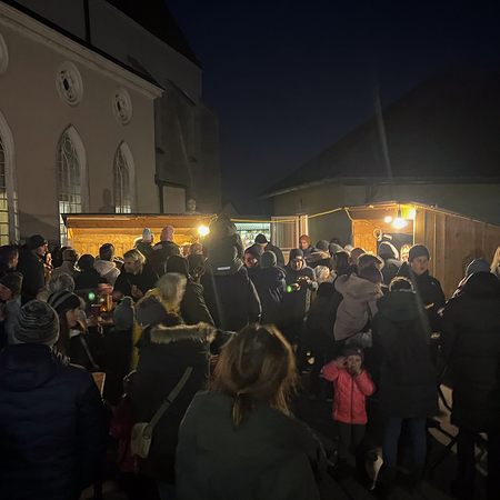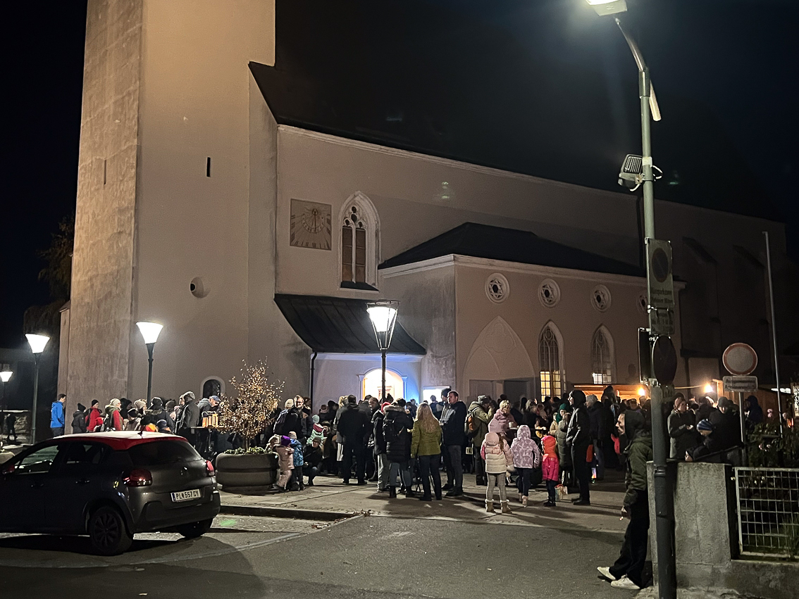 Der gemeinsame Laternenumzug durch Petzenkirchen fand am Kirchenplatz seinen Abschluss, wo die Kinder noch frische Haubis Briochekipferl zum Teilen bekommen haben.