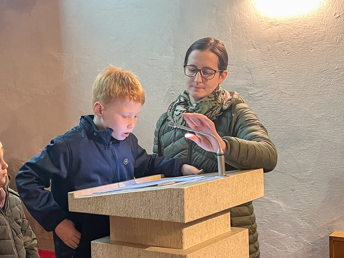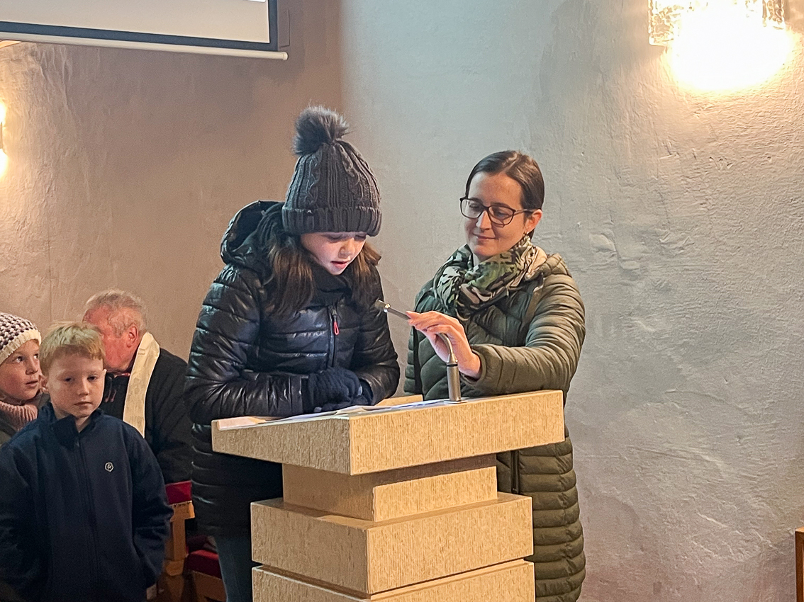 Die Andacht selbst wurde mit dem Lied „Heut feiern wir das Martinsfest“ sowie einigen Gedanken zum Thema „Mantel“ eröffnet.
