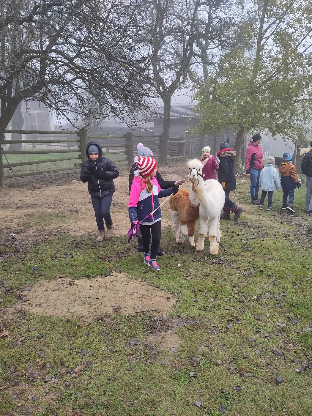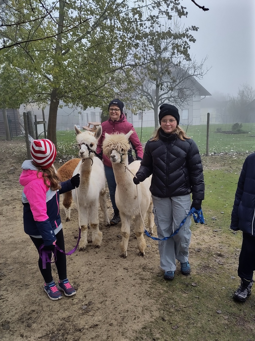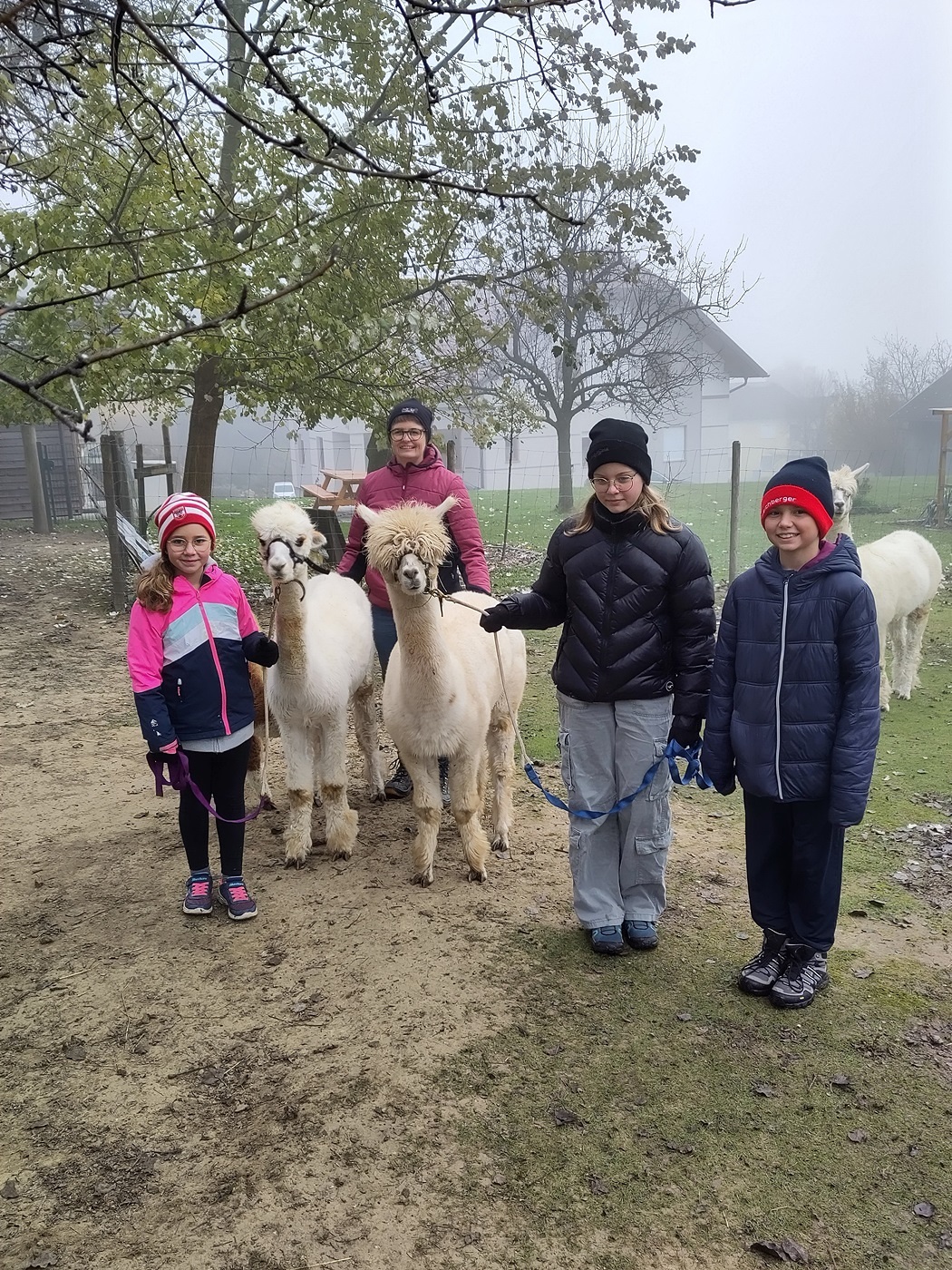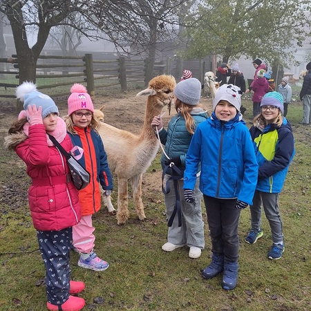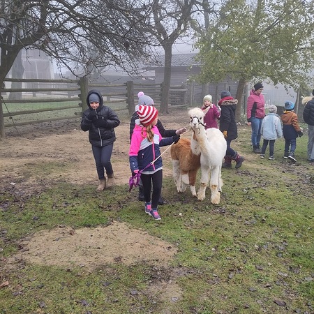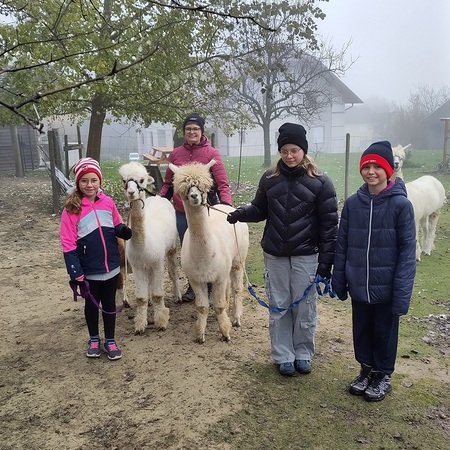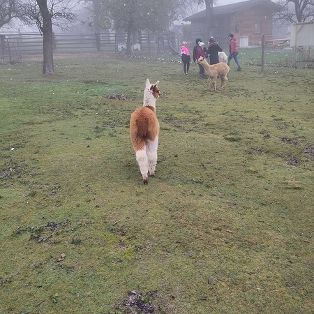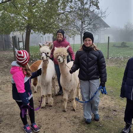 Doch es ging nicht nur ums Streicheln. Die Kinder durften die Alpakas auch durch die Weide führen. Dabei stellte sich heraus, dass die Alpakas zwar sehr freundlich, aber auch eigenwillig sind. Manchmal hielten sie einfach an und setzten sich sogar nieder.