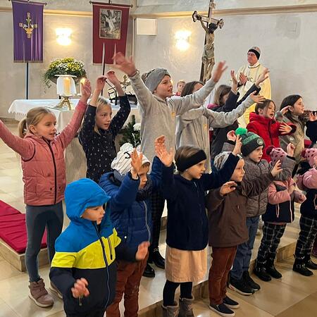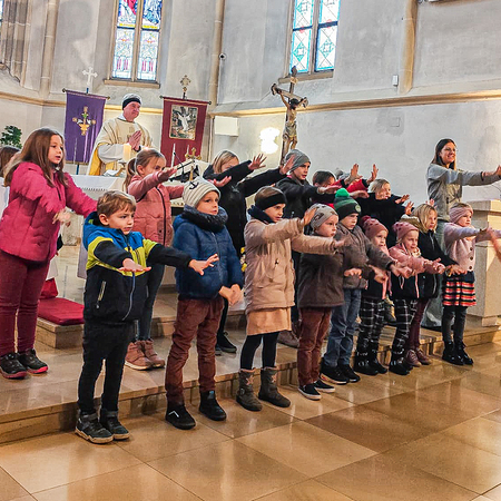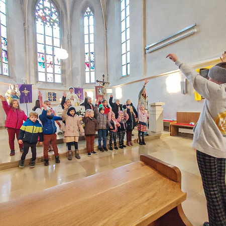 am Samstag ein fröhliches Singen, Tanzen, Spiel und Gemeinschaft mit 19 Kindern pfarrübergreifend mit Jasmin Karlinger. Der Abschluss am Sonntag mit einem erfrischenden Gottesdienst!