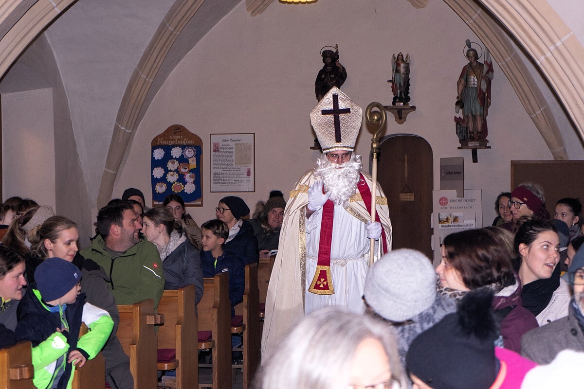 Fürbitten wurden von den Eltern der Kindergartenkinder vorgetragen, und zum Abschluss der Feier spendete Diakon Dietmar Ramharter den Segen. Das Nikolauslied " Lasst uns froh und munter sein" bildete den feierlichen Abschluss. Am Kirchenplatz gab es anschließend Kinderpunsch und Kekse für die Kinder.