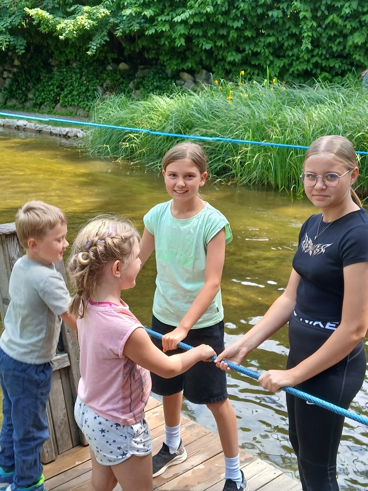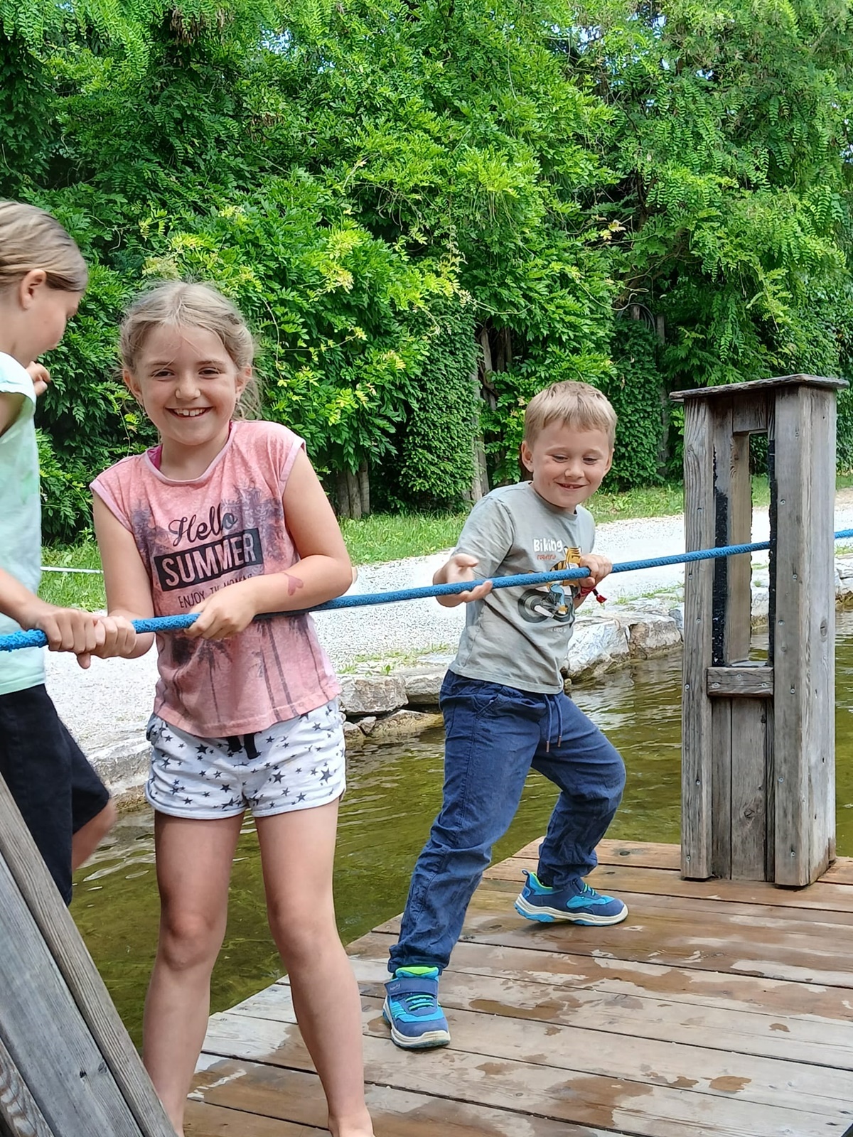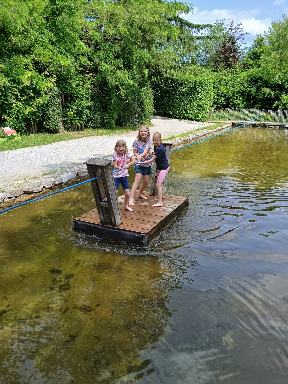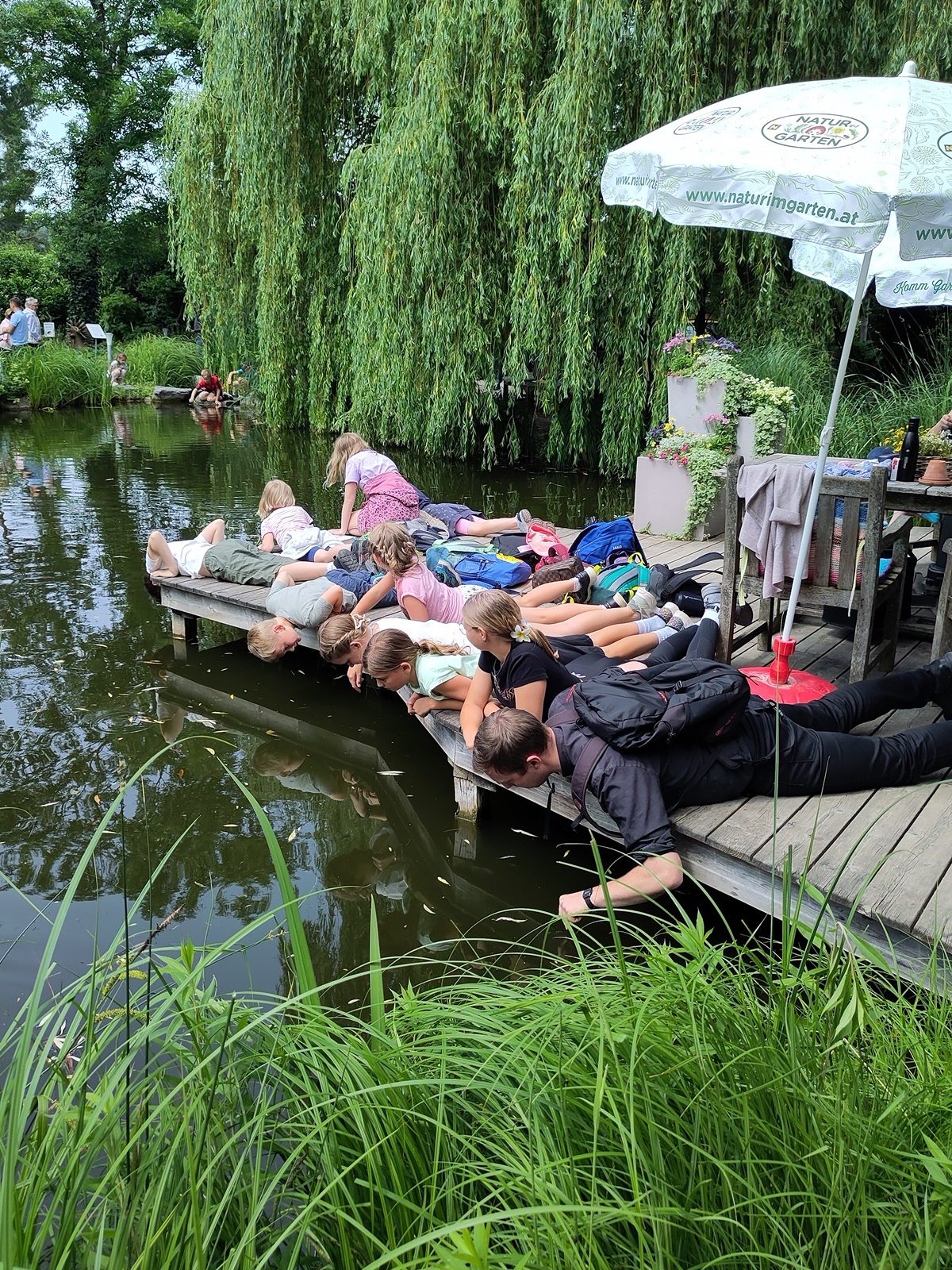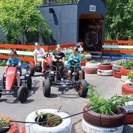 In der fantasievollen Gartenwelt jagte ein Highlight das nächste: Besonders beliebt war das Kartfahren auf der kleinen Rennstrecke des Parks bei dem kräftiges Treten und Lenktalent gefragt war. Auch Pater Stephan ließ es sich nicht nehmen, Runden zu drehen – sehr zur Freude der Kinder. Ein weiteres Highlight war die lange Rutsche, auf der die Kinder viel Freude hatten. Auch das Floßfahren sorgte für viel Lachen – vor allem, wenn es galt, das Gleichgewicht zu halten oder schneller als die anderen zu sein. Nach dem gemeinsamen Mittagessen sorgte der Quatschgärtner mit seinen lustigen Einlagen und verrückten Ideen für viel Spaß und beeindruckte die Gruppe mit tollen akrobatischen Einlagen. Im Labyrinth wurde der richtige Weg gesucht und auch Fangen und Verstecken gespielt. Beim Fischteich gelang es einigen, Fische zu „streicheln“.