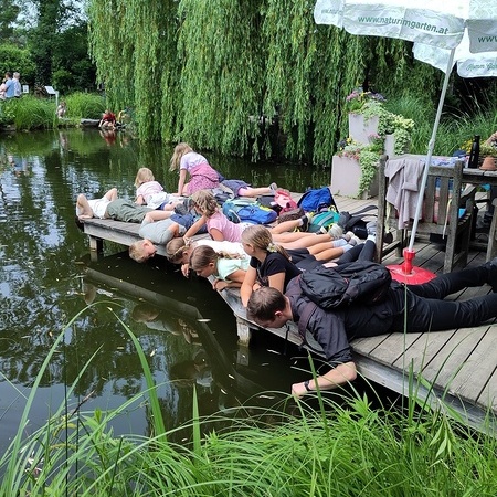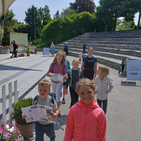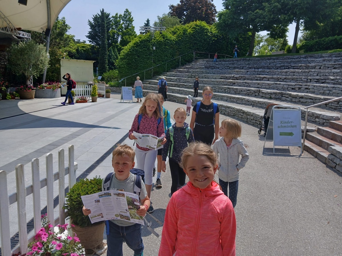 Am Pfingstmontag machten sich 14 Ministrantinnen und Ministranten gemeinsam mit Pater Stephan und Frau Prichenfried auf den Weg zu einem ganz besonderen Ausflug – es ging zu den Kittenberger Erlebnisgärten in Schiltern. Bei herrlichem Wetter und bester Laune startete die Gruppe vom Kirchenplatz.