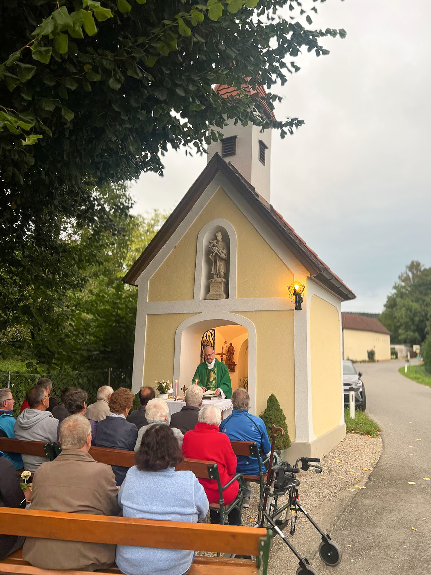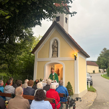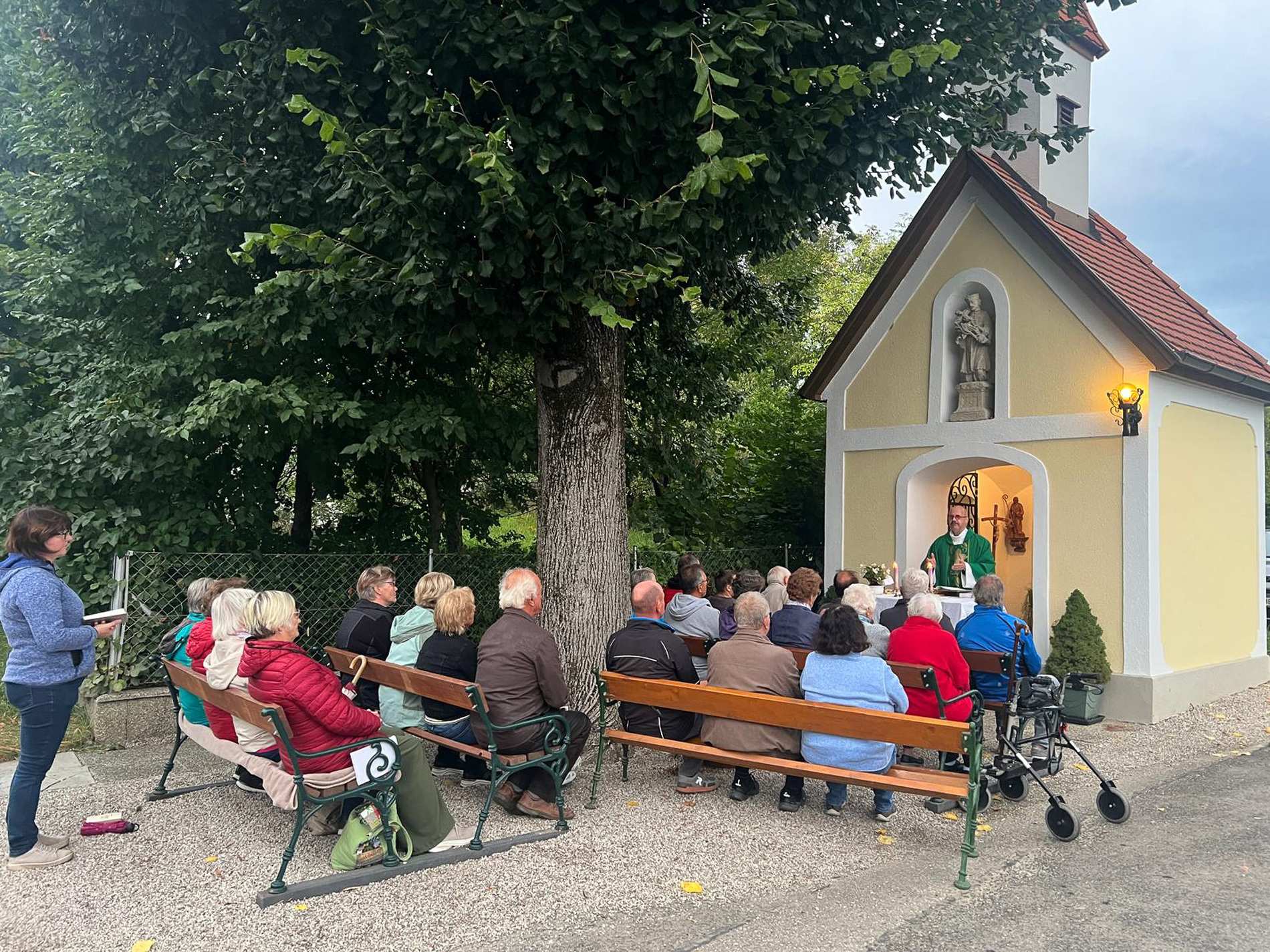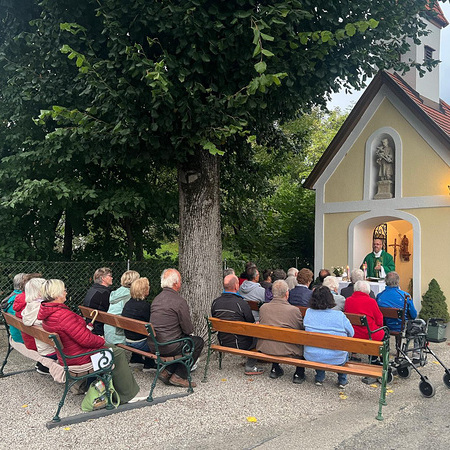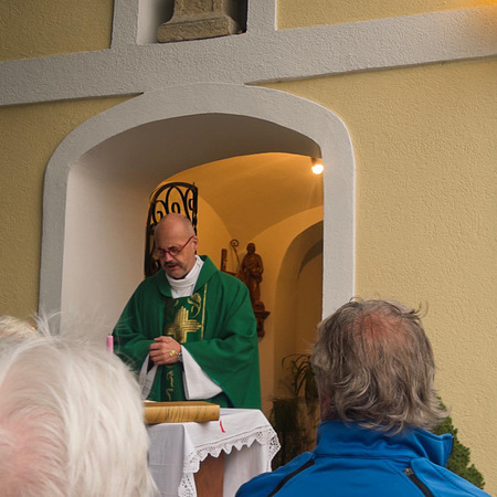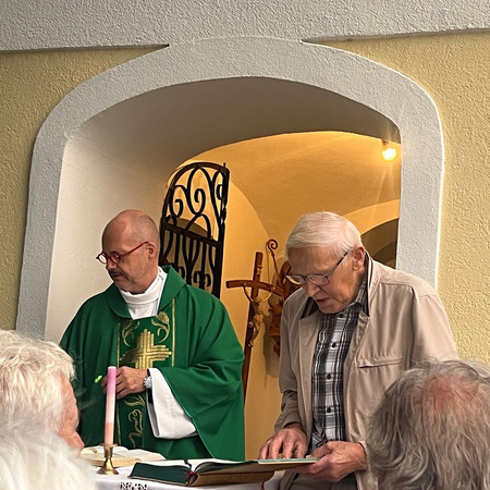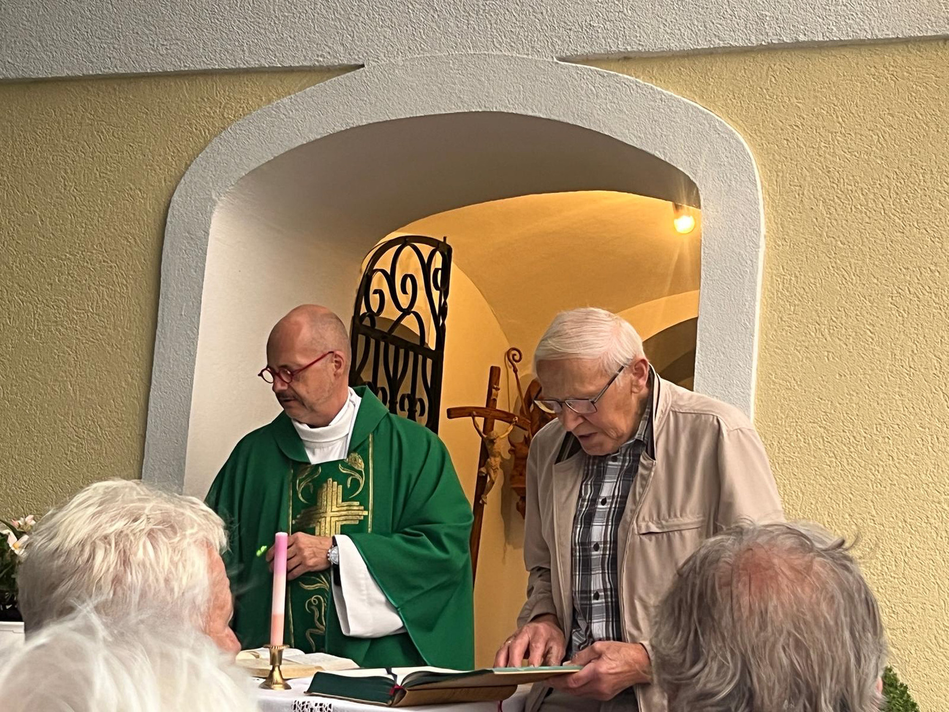 Moderator Mario Kietzer begrüßte die anwesenden Personen, freute sich über die zahlreiche Teilnahme und stellte sich vor. Er teilte mit, dass er ab dem 1. September auch für unsere Pfarre zuständig ist. Nach der Heiligen Messe bedankte sich Leopold Straßer bei Moderator Mario Kietzer für die Feier der Hl. Messe sowie bei den vielen Anwesenden für ihr Kommen. Anschließend lud er alle zu einem gemütlichen Beisammensein ins Dorfhaus ein.