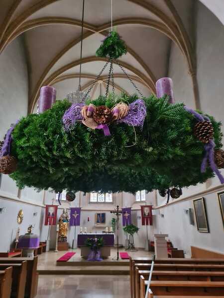 Im Adventkranz sind unsere hellen und dunklen Lebenserfahrungen eingebunden, die grünen Zweige verheißen Hoffnung und Leben. Die Kerzen sollen uns Licht in dunklen Tagen bringen.
