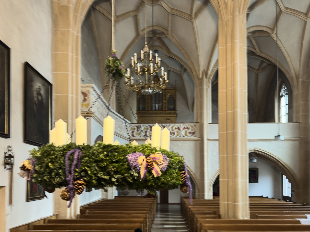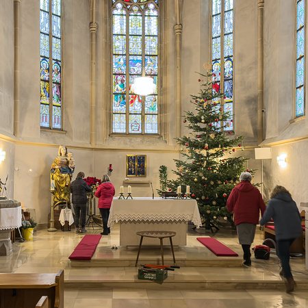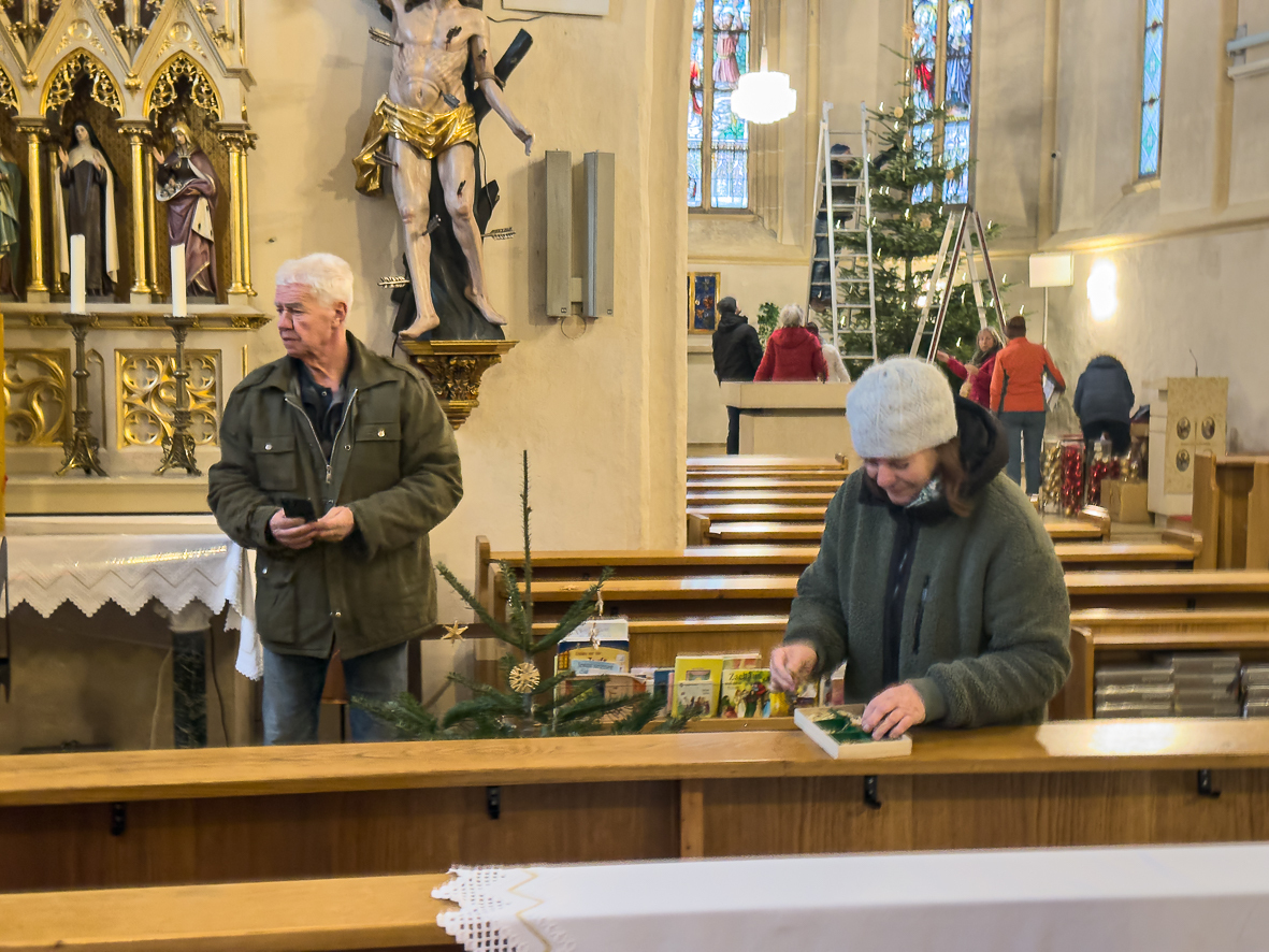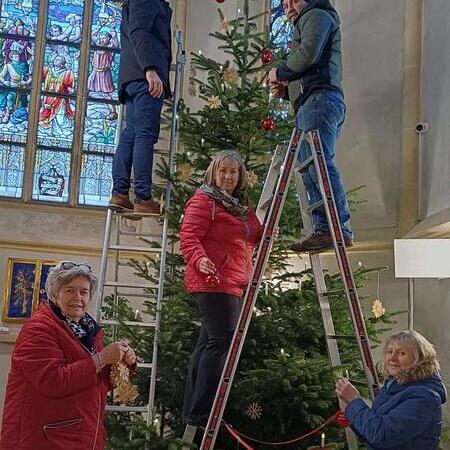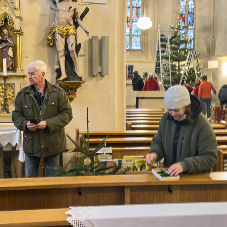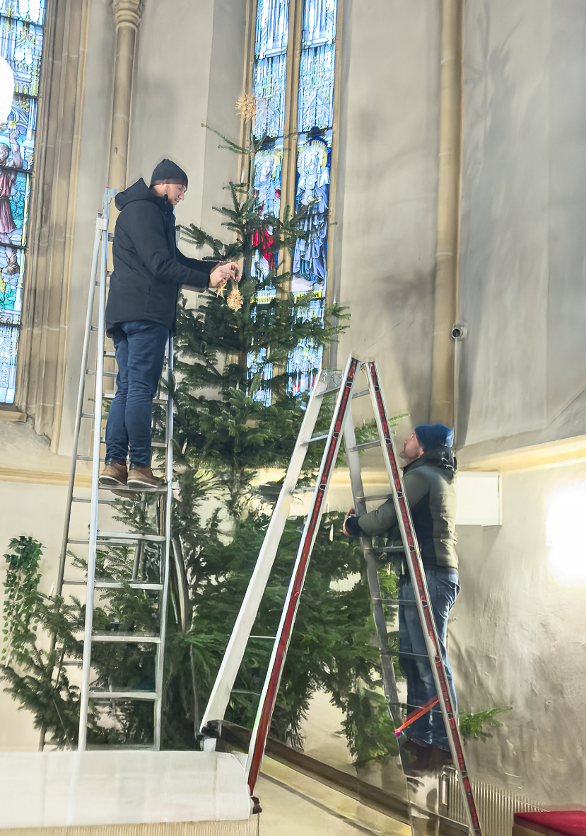 „Traditionell am Tag vor Heiligabend wird unsere Kirche für das Weihnachtsfest vorbereitet. Dank der tatkräftigen Unterstützung vieler Freiwilliger verwandelt sich der Kirchenraum in einen Ort voller Festlichkeit. Ob beim Aufbau der Krippe, der Gestaltung des Blumenschmucks, dem Wechseln der Paramente oder dem Schmücken des Weihnachtsbaums – jede helfende Hand trägt zum großen Ganzen bei. Ein herzliches ‚Vergelt’s Gott‘ für dieses ehrenamtliche Engagement!“