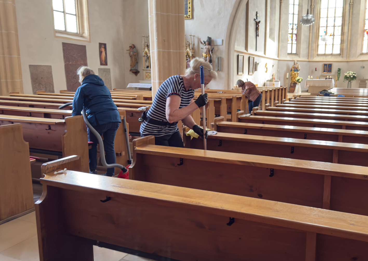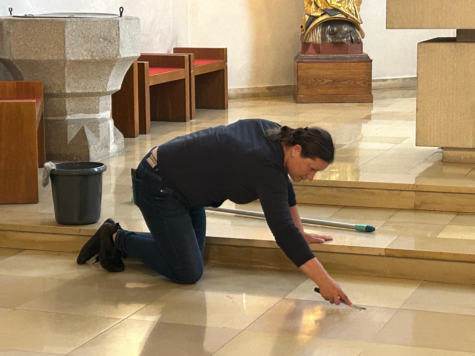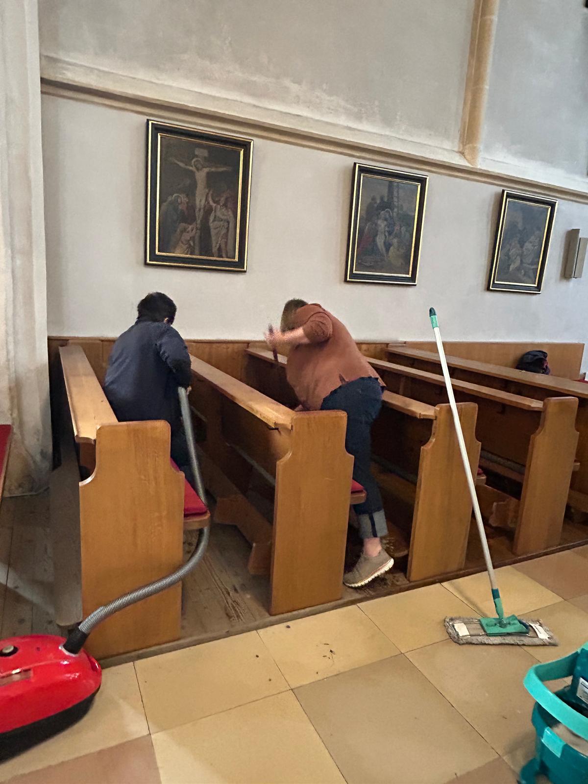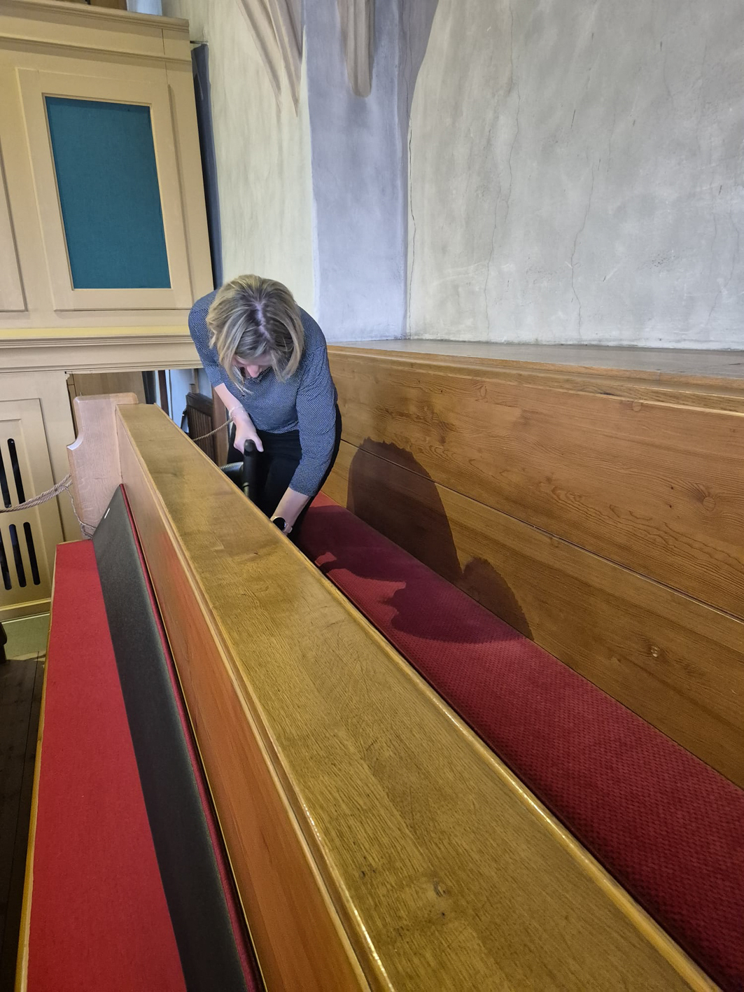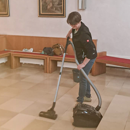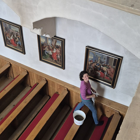 Währenddessen widmeten sich die Frauen dem Inventar. Es wurde gesaugt, gerieben, gewischt und poliert – von der Orgelempore über den Chor bis hin zu jeder einzelnen Kirchenbank.