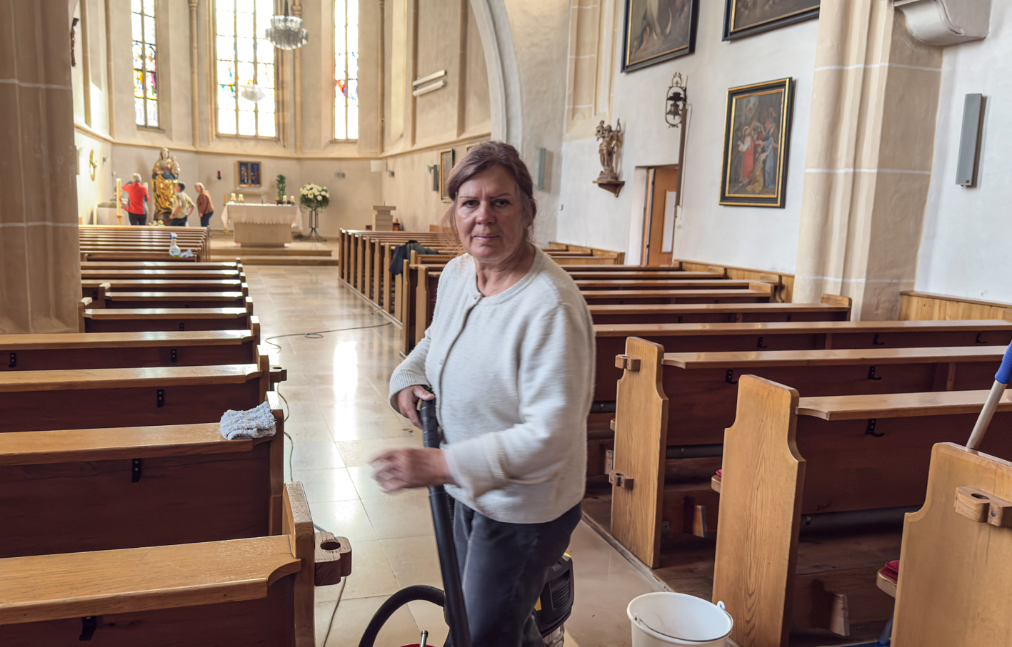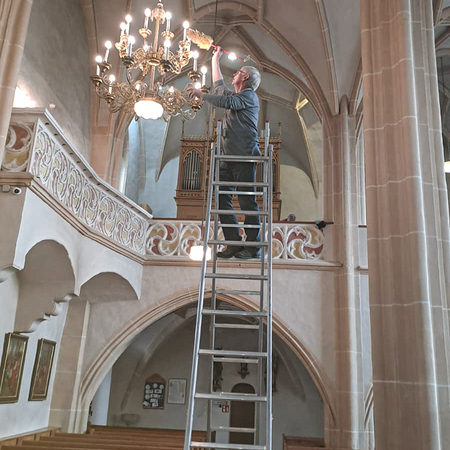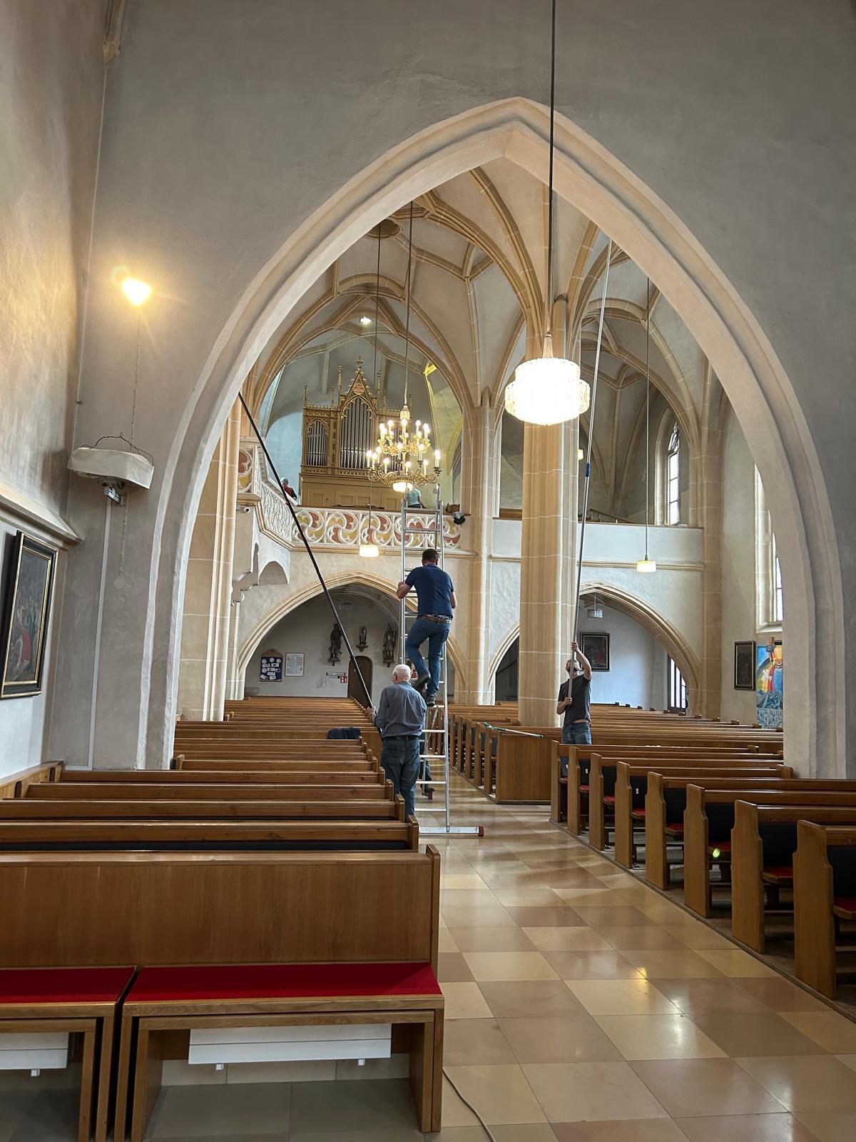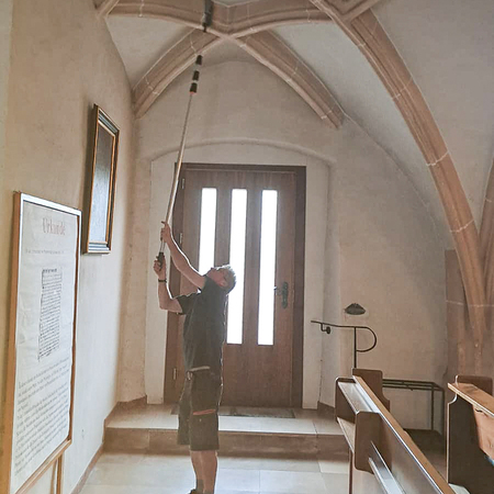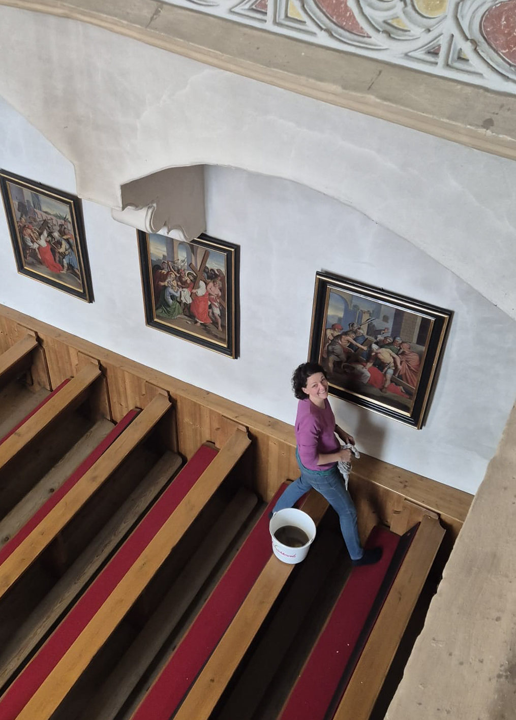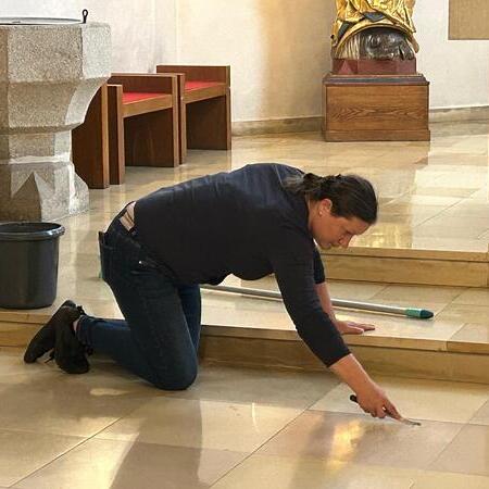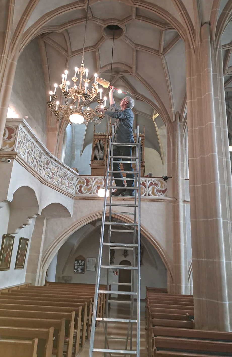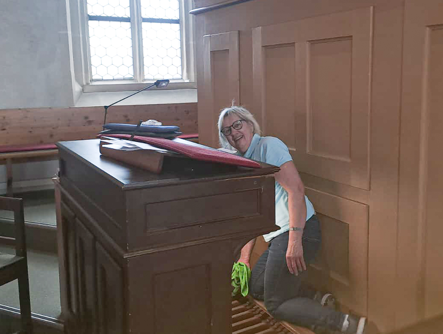 Währenddessen widmeten sich die Frauen dem Inventar. Es wurde gesaugt, gerieben, gewischt und poliert – von der Orgelempore über den Chor bis hin zu jeder einzelnen Kirchenbank.