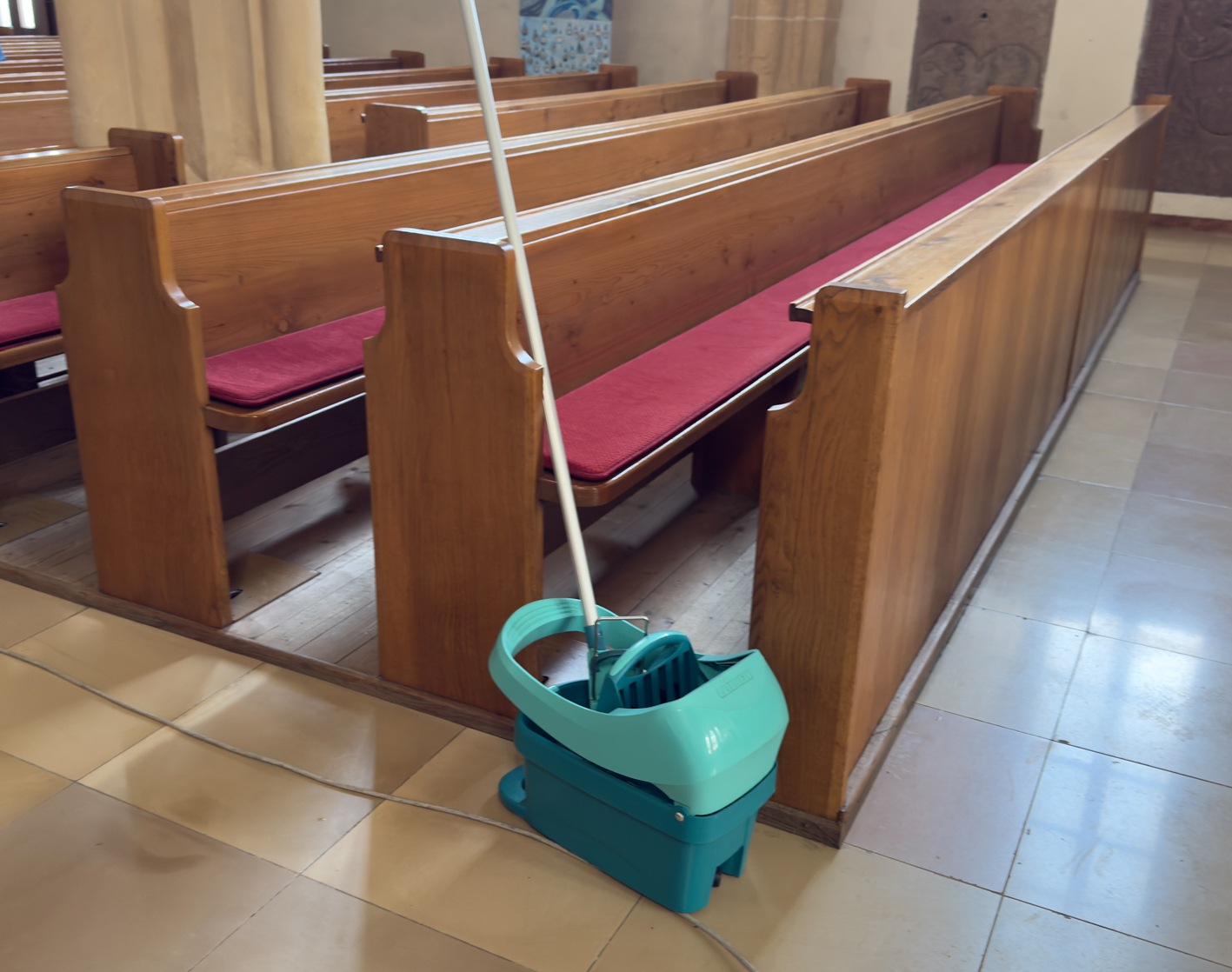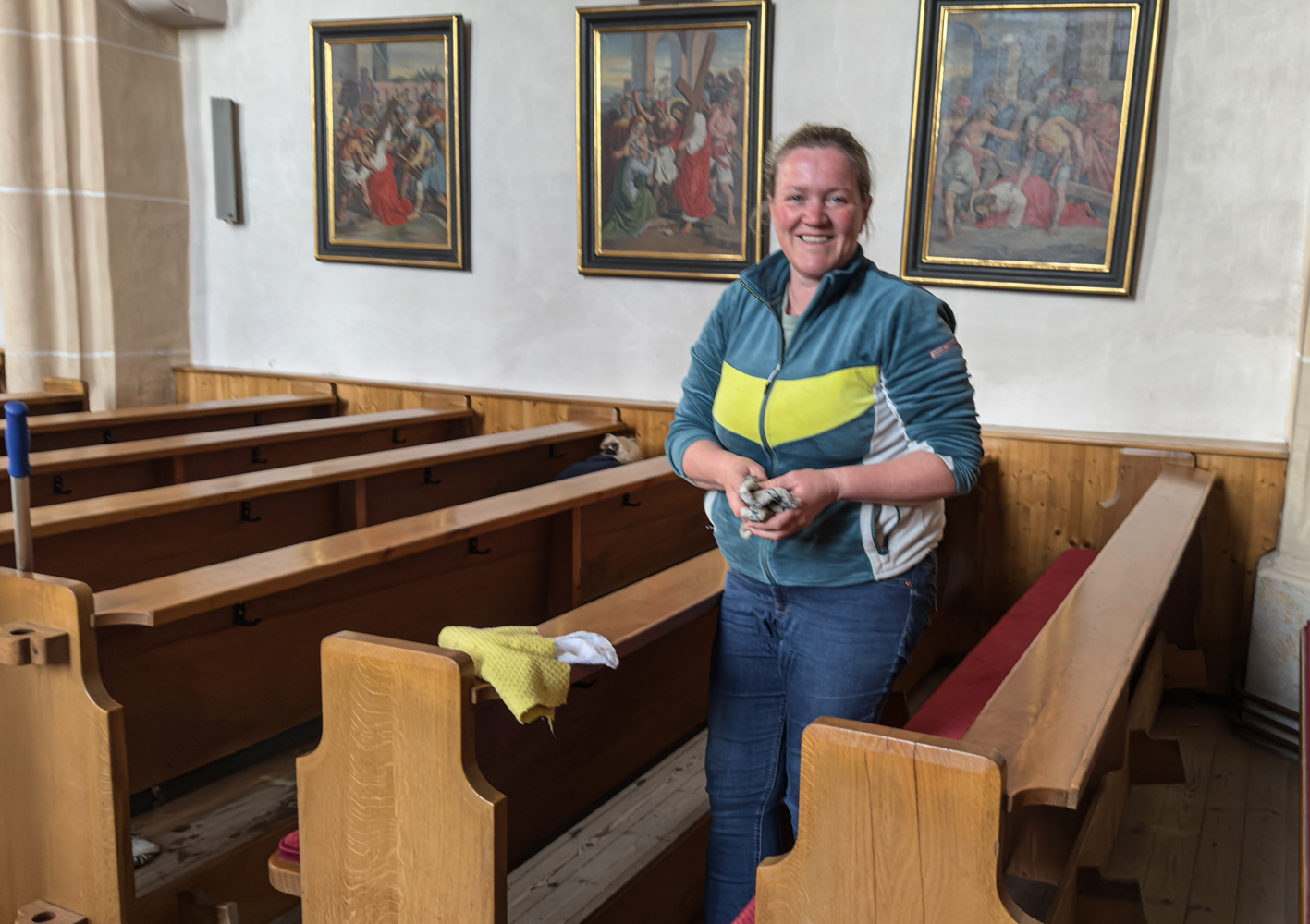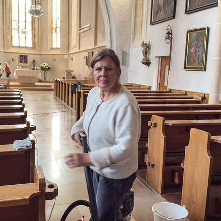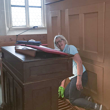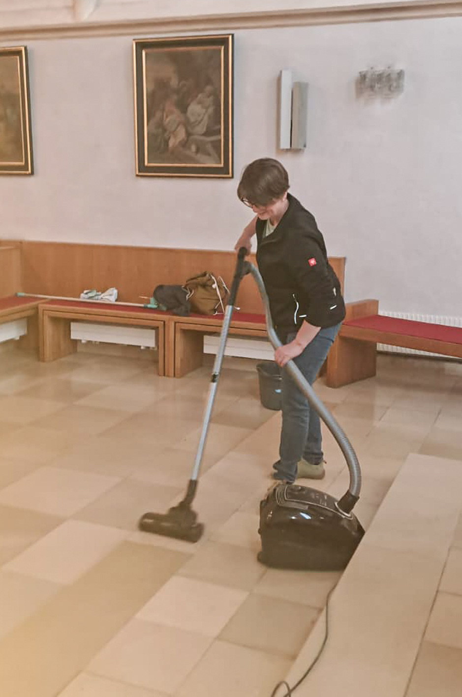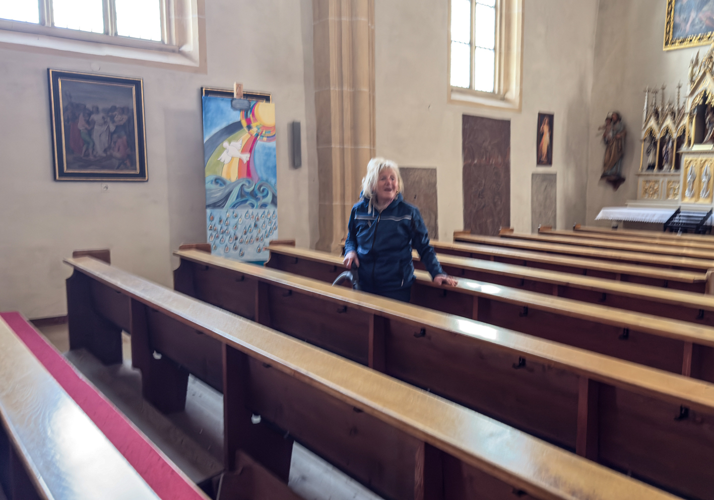 Währenddessen widmeten sich die Frauen dem Inventar. Es wurde gesaugt, gerieben, gewischt und poliert – von der Orgelempore über den Chor bis hin zu jeder einzelnen Kirchenbank.