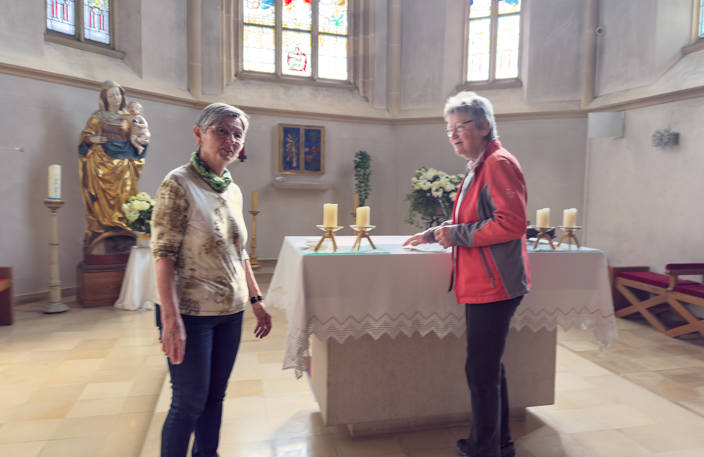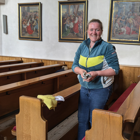 Besonders behutsam wurden die Heiligenfiguren und Bilder entstaubt, damit sie den Kirchenbesuchern wieder in ihrer vollen Pracht entgegenstrahlen können. Ein wertvoller Dienst im Hintergrund. Diese Arbeit findet im Stillen statt, doch das Ergebnis ist für uns alle sichtbar und spürbar. Es ist eine besonders wertvolle Arbeit, die zeigt, wie sehr uns unser gemeinsamer Ort des Gebets am Herzen liegt.