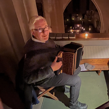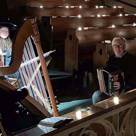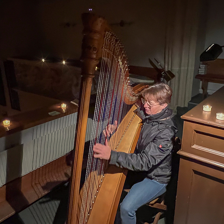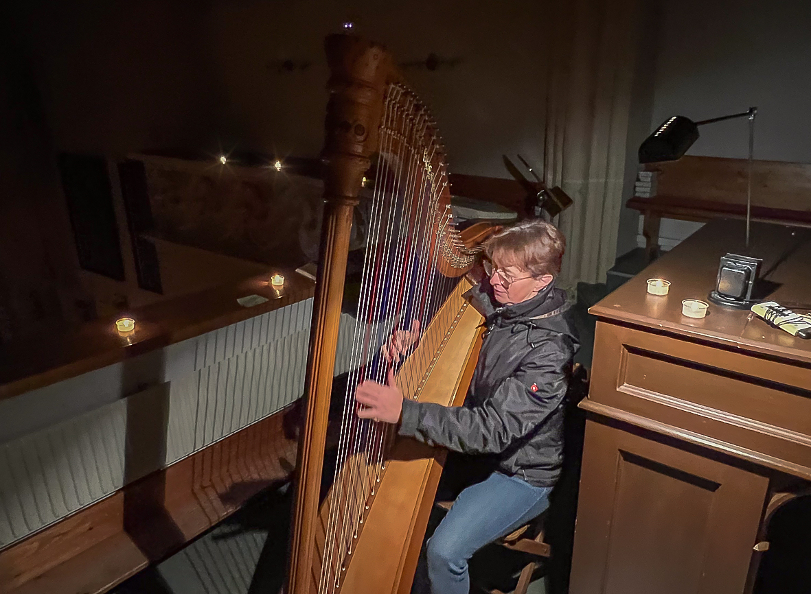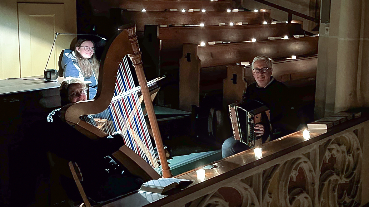 in der dritten Roratemesse wurde mit Harfen- Hackbrett und Harmonika Klängen auf den kommenden Hl. Abend eingestimmt. (Hausbankl Musi)