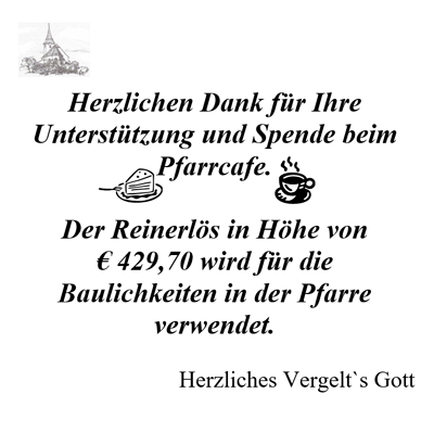 Bei leckeren, selbstgebackenen Mehlspeisen, Kaffee und kalten Getränken nutzten viele Pfarrbewohner die Gelegenheit, miteinander ins Gespräch zu kommen. Wir danken allen, die die Mehlspeisen gebacken haben, beim Servieren geholfen haben und den Pfarrkaffee besucht haben.”