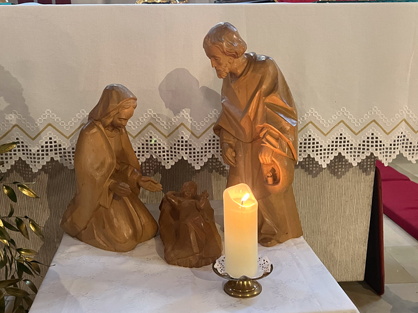 „Traditionell am Tag vor Heiligabend wird unsere Kirche für das Weihnachtsfest vorbereitet. Dank der tatkräftigen Unterstützung vieler Freiwilliger verwandelt sich der Kirchenraum in einen Ort voller Festlichkeit. Ob beim Aufbau der Krippe, der Gestaltung des Blumenschmucks, dem Wechseln der Paramente oder dem Schmücken des Weihnachtsbaums – jede helfende Hand trägt zum großen Ganzen bei. Ein herzliches ‚Vergelt’s Gott‘ für dieses ehrenamtliche Engagement!“